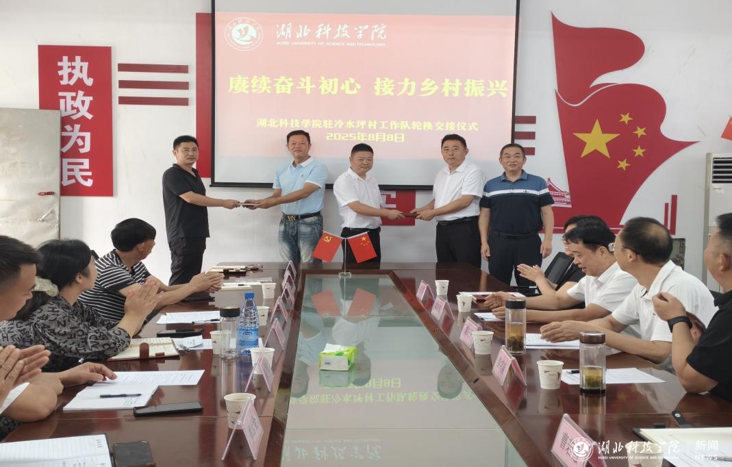 8月8日上午,在冷水坪村村委会二楼会议室召开湖北科技学院驻冷水坪村乡村振兴工作队轮换交接仪式,仪式由学校社会合作与校友工作处处长陈洪国主持。