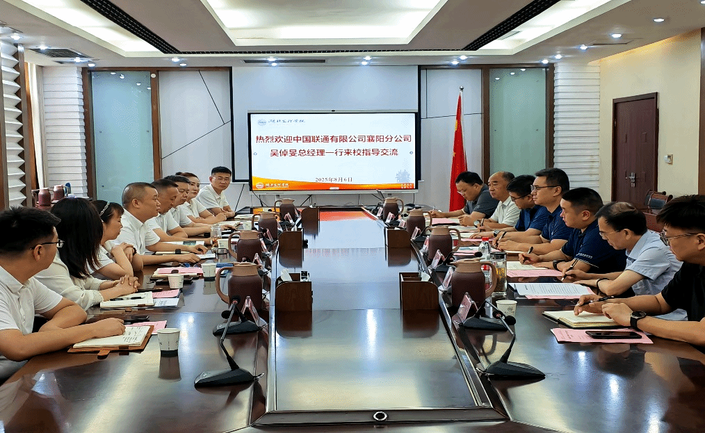 中国联合网络通信有限公司襄阳市分公司(以下简称“襄阳联通公司”)党委书记、总经理吴倬旻一行来湖北文理学院继续教育学院就深化校企合作进行交流。学校副校长杭波接待了吴倬旻一行。