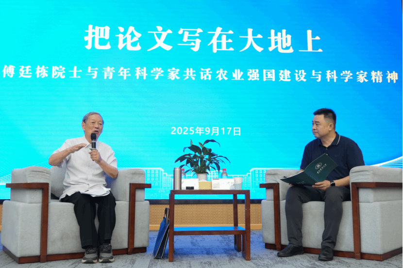 在互动环节中,青年科技工作者们围绕智慧农业发展、生物技术与传统育种融合、科研方向选择等热点问题踊跃提问,傅廷栋院士细致解答。“成功来自于汗水加智慧加机遇,而机遇只给有准备的人。”傅廷栋院士的寄语掷地有声。他还叮嘱青年一代要牢记“不怕难、不满足、不计较、不浮躁”,在建设农业强国的新征程中勇担使命、开拓创新。