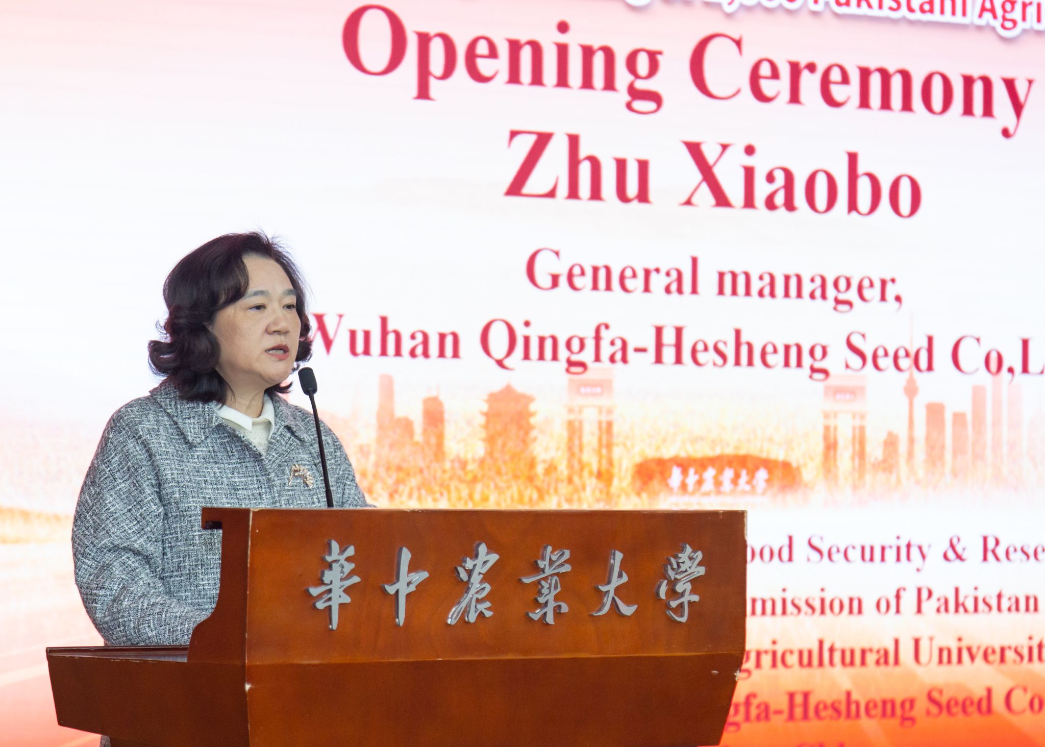 朱晓波在致辞中介绍,武汉庆发禾盛公司始终专注于将中国优质作物品种推向国际市场,助力农民提升产量、增加收入,为全球农业发展赋能。她提到,公司在中巴农业合作领域积累了丰富经验,后续公司将通过现场教学、社会实践等多样化形式提供支持,帮助巴基斯坦学员深入了解种子生产与加工、农业研发及产业发展等领域的最新动态与前沿成果。