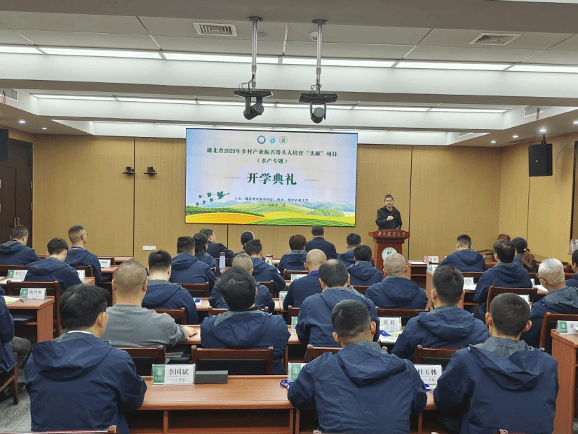 深秋荆楚鱼肥蟹美,狮山脚下薪火相传。11月13日,湖北省2025年乡村产业振兴带头人培育“头雁”项目(水产专题)开学典礼在华中农业大学教育培训学院隆重举行。湖北省农业农村厅科技与人才处副处长陈鹏宇,学校教育培训学院副处级干部王春、培训服务办公室主任刘辉出席活动,全体水产专题班学员参加开学典礼。