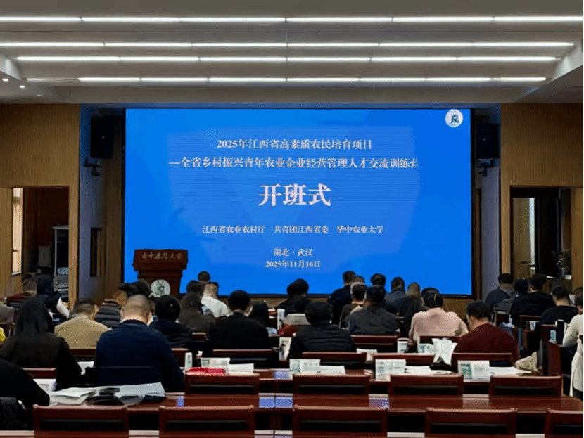 11月16日,2025年江西省高素质农民培育项目——全省乡村振兴青年农业企业经营管理人才交流训练营专题班在学校顺利开班。共青团江西省委青年发展部出席人员讲授开班第一课。
