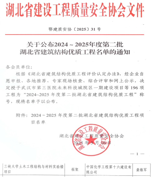 本网讯(通讯员 雷勇/文 黄明炎/图) 近日,三峡大学校园规划与建设处(以下简称“校建处”)传来喜讯:学校精心打造的土木实验楼项目经严格评审,成功荣获“湖北省建筑结构优质工程奖”“湖北省建筑工程安全文明施工现场”。这一荣誉不仅标志着学校在基础设施建设质量和品质上的持续提升,更成为学校落实高质量发展要求、以匠心打造育人环境的生动实践。