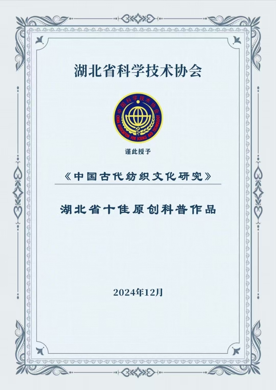 启动仪式上,由我校科协推荐的纺织文化研究中心研究员赵金龙、王燕、李斌、梁文倩等撰写的专著《中国古代纺织文化研究》喜获“湖北省十佳原创科普作品”。《中国古代纺织文化研究》以中国古代文化的视角阐述纺织与其的关系,突显了中国古代纺织文化的辉煌。全书分为“古代字词中的纺织篇”“古代典籍中的纺织篇”“古代图像信息中的纺织技术篇”“纺织品中的文字篇”四篇,共十五章,37万字。本书由中国古代纺织外史而入,贯通中国古代纺织内史(机械史),辅之以相关机械动画,形象地展现中国古代纺织技术的机巧,最后携中国古代纺织艺术品而出,将中国古代纺织的文化内涵、机械原理、艺术表征融为一体,表达了中国古代纺织的多维形象。本书图文并茂,并辅以动画,可作为中国古代纺织技术史和纺织文化研究人员的专业参考书,同时也是一本极具特色和趣味的纺织文化科普书籍。