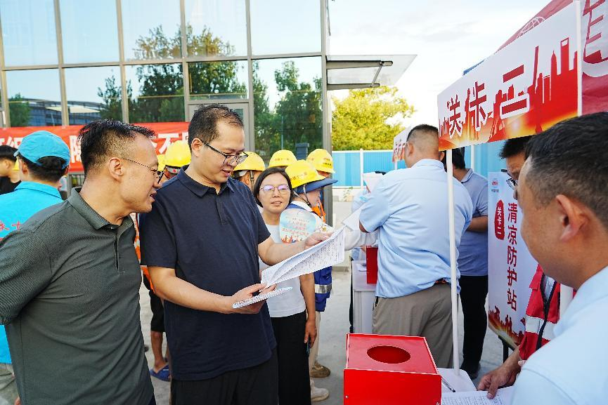 在“安全健康知识宣讲”环节,项目部特邀专业安全健康讲师,围绕"工地急救处理"、"高温天防中暑知识"及"高温常见疾病防治"等内容进行系统讲解。工友们认真聆听,积极互动,现场学习氛围浓厚。
