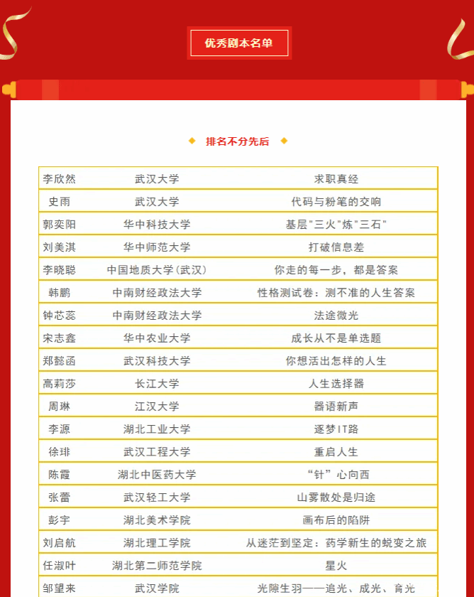 据悉,本次微短剧剧本征集活动旨在深入学习贯彻党的二十大精神,落实党中央、国务院关于高校毕业生就业工作的决策部署,通过征集聚焦职业发展、成长认知、基层历练等主题的剧本,强化高校生涯教育与就业指导,增强大学生职业规划意识,助力学子以择业新观念打开就业新天地。自活动启动以来,我校招就处将其作为创新就业指导形式、提升学生职业规划意识的重要抓手,迅速组织各学院开展剧本征集与选拔工作,并从题材挖掘到创作打磨进行全程跟踪指导,充分调动师生参与剧本创作的积极性,为优秀作品的涌现提供了有力保障。值得关注的是,张蕾的优秀剧本后期将由活动主办方统一组织拍摄成微短剧,在相关官方媒体平台进行展播,并纳入湖北省生涯教育与就业指导数字资源库。