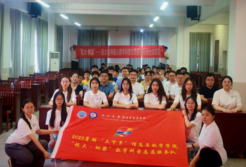 长江大学新闻网讯 近日,孝昌县小悟乡险峰中学2025年暑假爱心托管班结业仪式在学校三楼会议室隆重举行。长江大学信息与数学学院“抗大·树梁”数学科普志愿服务队的成员们,与60余名托管班的孩子及当地领导、老师欢聚一堂,用歌声传递温情,用朗诵展现活力,共同为这20天的难忘旅程画上圆满句号。