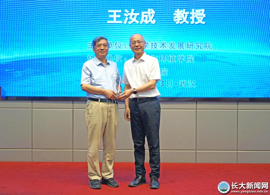 作为本次活动的重要学术见证,刘勇胜校长向王汝成赠送镌刻有"长江大学"校徽的讲坛纪念杯。这份特殊礼物既彰显长江大学对高端人才的礼遇,也寓意着校际合作的深化。学生代表献上的鲜花,则传递出长江大学"尊师重教"的深厚传统。
