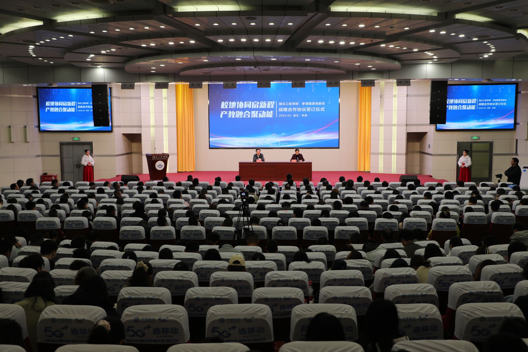 孝感高新区管委会领导张文平、陈小平、连莲、李伟及高新区办公室、党群工作部、科技与产业发展局、征收办、高创投资公司等相关部门负责人;我校领导邹虹、覃彩芹、李渺、郑俊,学校各职能部门主要负责人、各教学学院主要负责人及800多名教师、学生代表参加活动。
