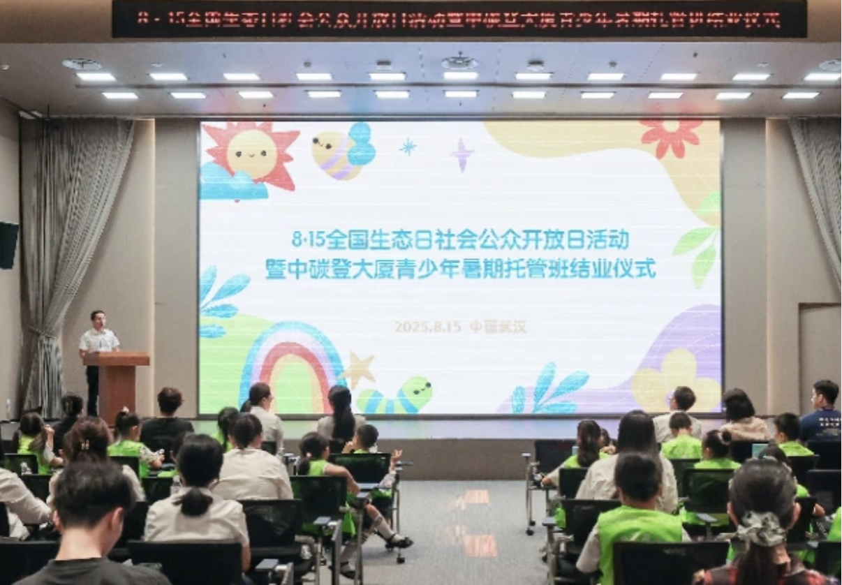 8月15日,第3个全国生态日当天,土木建筑与环境学院“筑梦”青协受邀参加由中碳登大厦楼宇党委主办、水果湖街道协同参与的“社会公众开放日”活动暨青少年暑期托管班结业仪式。本次活动以“共赴双碳之约,播种低碳未来”为主题,旨在践行“双碳”战略,培育青少年环保理念。