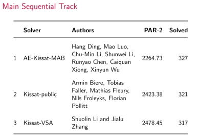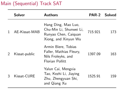 国际SAT算法竞赛自1992年起,至今已成功举办二十八届,被公认为全球SAT领域最具权威性与影响力的顶级赛事。本届竞赛吸引了来自全球学术界与工业界的众多顶尖团队参与,参赛单位包括美国卡内基梅隆大学、法国巴黎第十大学、德国弗赖堡大学、奥地利林茨大学等国际著名高校,国内则有香港中文大学、北京航空航天大学、华中科技大学、国防科技大学、中国科学院等知名院校和科研机构。