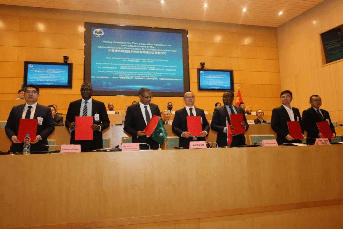 赴亚的斯亚贝巴参加“中非创新活动日”的企业及高校积极响应,中铁十一局、中建三局、葛洲坝集团、南非文达大学、埃塞季马大学等单位与我校和亚的斯亚贝巴科技大学共同签署《中非绿色建造技术创新港共建协议》。