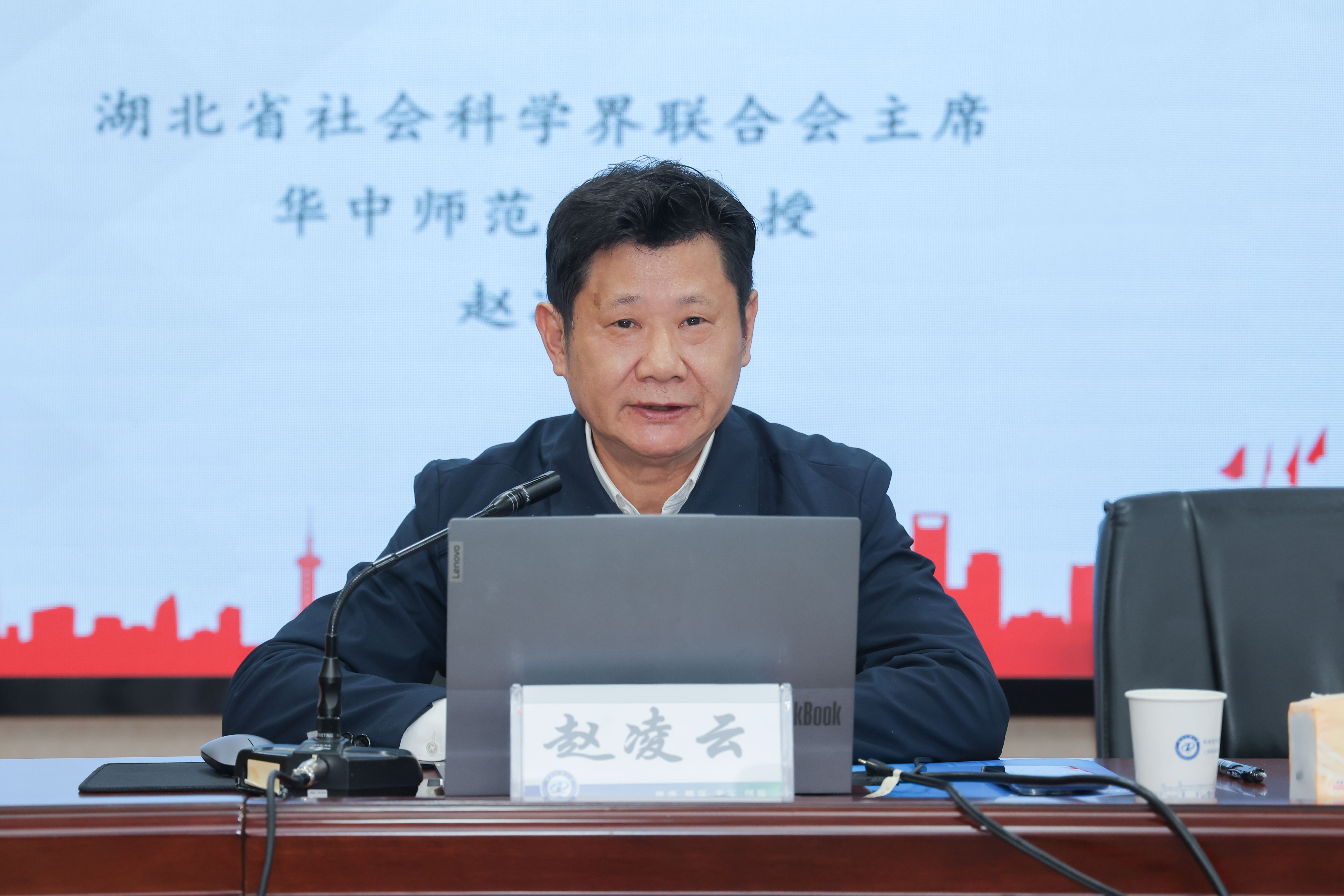 赵凌云作题为《担当构建中国自主知识体系的时代责任》的专题报告,他结合《习近平谈治国理政》第五卷中“实现高水平科技自立自强”相关内容和习近平总书记关于构建中国哲学社会科学自主知识体系的重要论述,系统阐述了自主知识体系构建的时代背景、重大进展与核心路径。他指出,当前各学科话语体系建设呈现出“学科体系中国化、学术体系创新化、话语体系标识化”的总体趋势,哲学社会科学工作者应立足“国之大者”,通过“聚焦三大问题、把握三个关键、避免三个偏颇”等路径,强化问题意识、优化学术方法。报告结束后,赵凌云与教师代表围绕“构建中国自主知识体系”这一核心命题,分别从研究方法论、学科建设路径与课题申报策略等方面展开了深入交流。