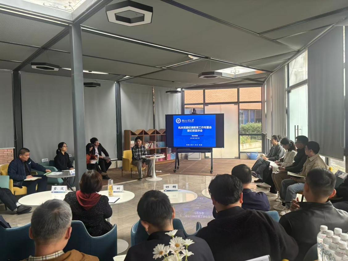 为进一步提升机关干部业务能力,推动党纪学习教育和深入贯彻中央八项规定精神学习教育常态化长效化,10月31日下午,机关党委在行政楼阳光房组织开展了机关业务沙龙培训研讨会并对二级单位进行党纪学习教育。活动由机关党委书记祁锋主持,机关各支部委员代表参会,校纪委、校党委组织部、校工会相关负责同志出席活动。