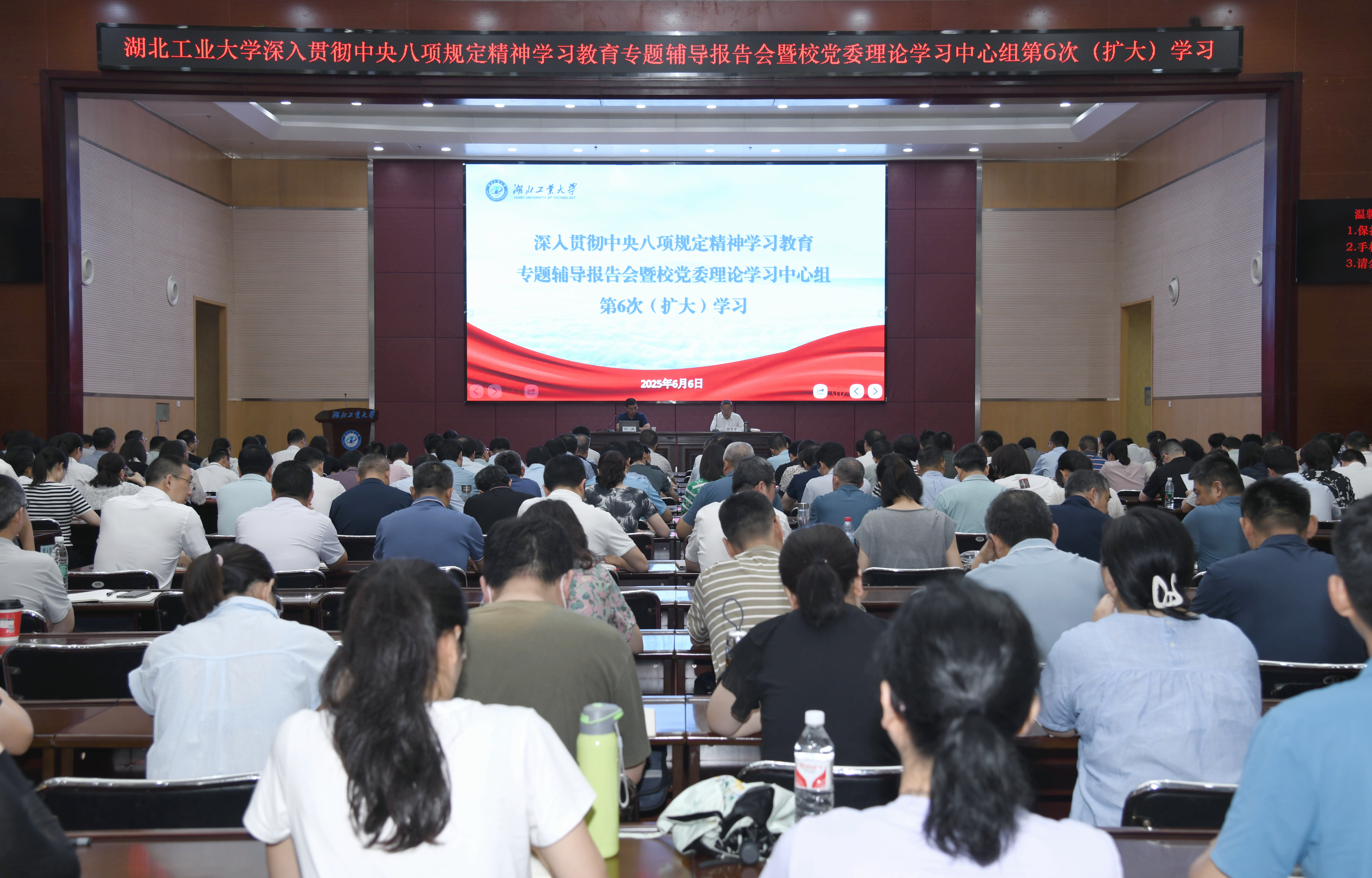 为持续推动学习教育走深走实,6月6日上午,学校举办深入贯彻中央八项规定精神学习教育专题辅导报告会暨校党委理论学习中心组第6次(扩大)学习,邀请武汉大学法学院祝捷教授作专题辅导报告。会议由校党委书记彭育园主持。
