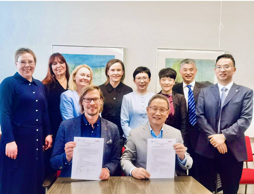 作为学校北欧重要合作伙伴,代表团与芬兰瓦萨应用科技大学在疫情后首次会面,续签校际合作备忘录,重启战略伙伴关系。湖北工业大学继续教育学院与对方院校签署 “共建中芬青年创新创业基地”“互派教师研修交流”“互派学生交流” 三项协议,重点推进继续教育领域的师资互聘、学分互认及创业孵化合作。在参访 “博特尼亚科技园” 时,继续教育学院代表深入调研芬兰高校与企业深度产教融合的创新机制,为学院未来开展 “双元制” 职业教育项目积累实践经验,助力交叉学科实验室建设及产教融合机制创新。