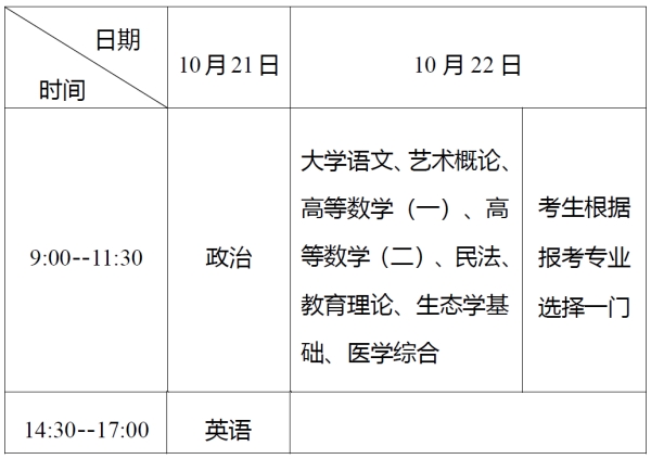 2.专科起点升本科考试时间表