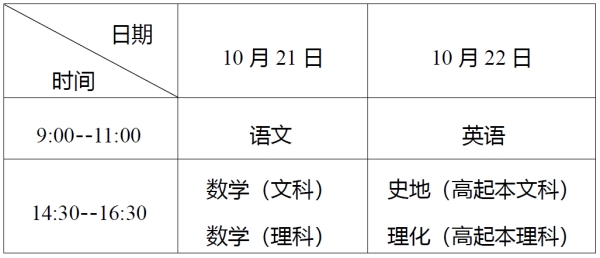 1.高中起点升本、专科考试时间表
