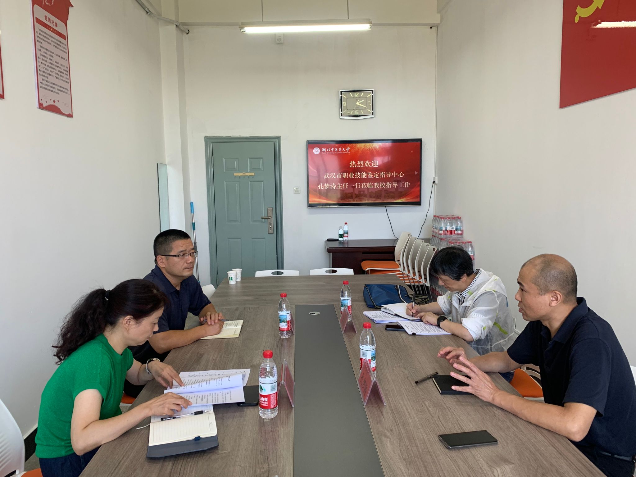 继续教育学院负责人对孔梦涛主任一行的到来表示热烈欢迎和衷心感谢。她表示,学院将深入学习领会文件精神,严格遵循武汉市职业技能鉴定指导中心的工作要求,结合学校实际情况,科学制定评价工作计划,有序推进 2025 年高技能人才评价工作。