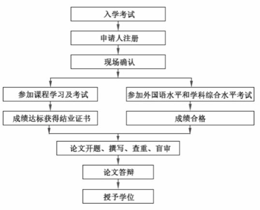 申请人在学习期间可报名参加国家组织的外国语水平和学科综合水平考试。课程学习和同等学力全国统考均合格者方可进入第二阶段培养。