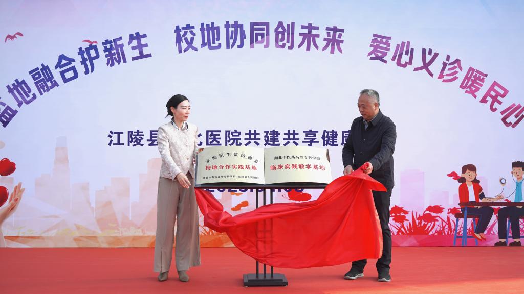 为进一步落实学校与江陵县人民政府签订的校地战略合作协议,深化校地合作,提升基层医疗卫生服务水平。4月8日上午,学校与江陵县卫生健康局正式签订《家庭医生签约服务合作协议》,党委委员、副校长张昌文与江陵县副县长黄望星共同为“湖北中医药高等专科学校、江陵县人民政府家庭医生签约服务校地合作实践基地”“湖北中医药高等专科学校临床实践教学基地”揭牌。