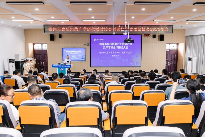 “农业新质生产力赋能食药用菌产业高质量发展产学研供需对接会暨黄冈市食用菌协会2025年会”在我校召开。本次会议由黄冈市食用菌协会与黄冈师范学院联合主办,汇聚政府领导、行业专家、企业代表等140余人,围绕食药用菌产业升级、食用菌产需精准对接及产学研深度融合展开深入探讨,为大别山地区食用菌产业高质量发展注入新动能。供需对接会暨产学研合作签约大会成为焦点。