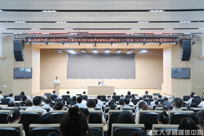 湖北大学举办深入贯彻中央八项规定精神学习教育读书班专题党课暨校党委理论学习中心组(扩大)2025年第7次集体学习湖北大学继续教育学院共同参加。校党委书记谢红星讲授专题党课。校党委副书记、校长刘建平主持会议。校领导,全校中层干部,民主党派负责人、无党派人士代表和统战团体负责人参加会议。