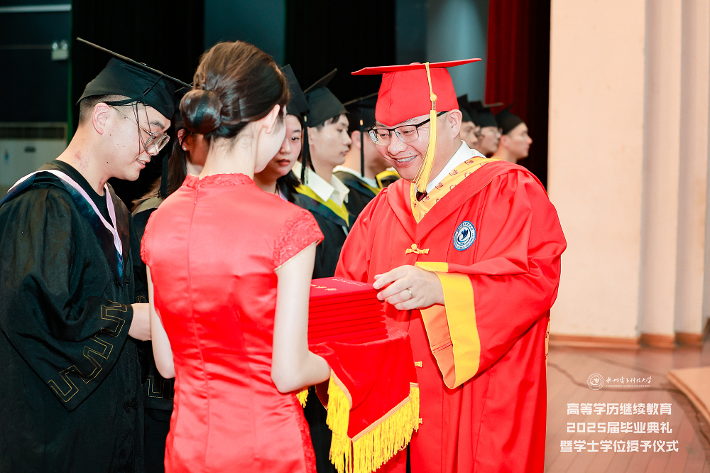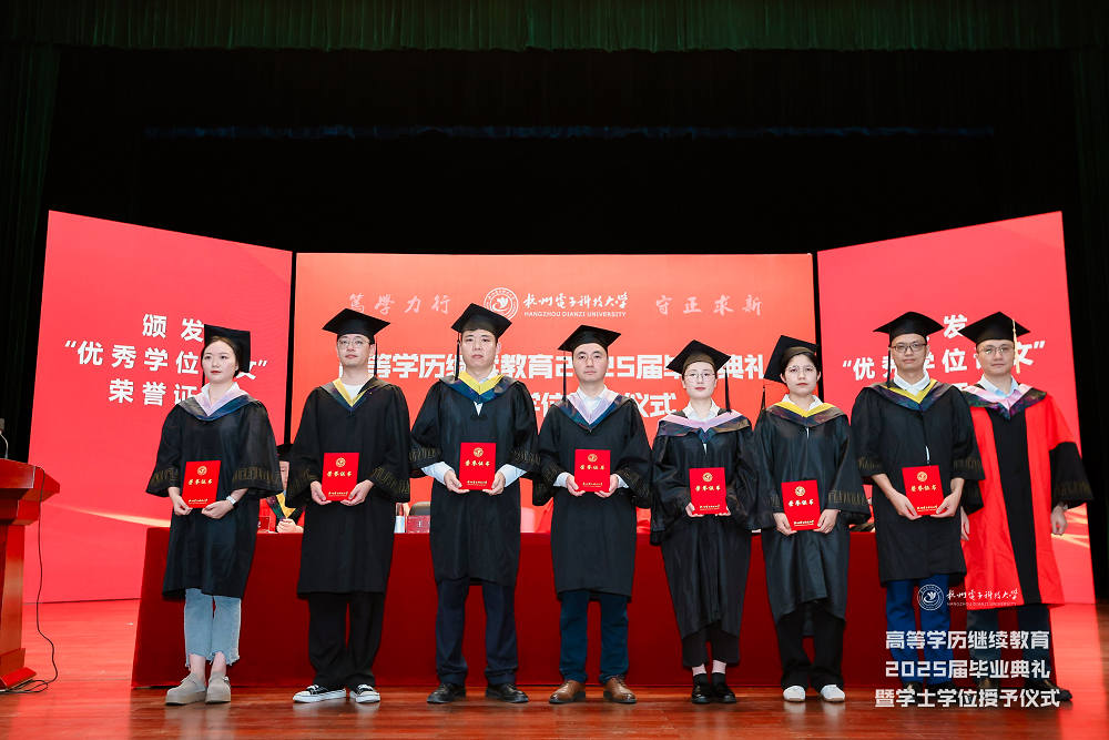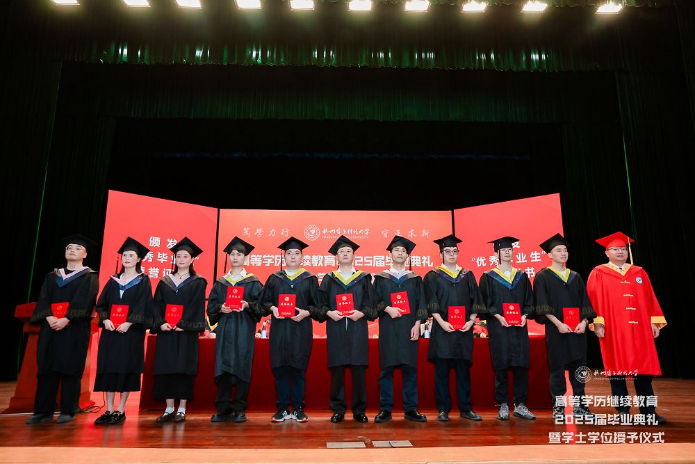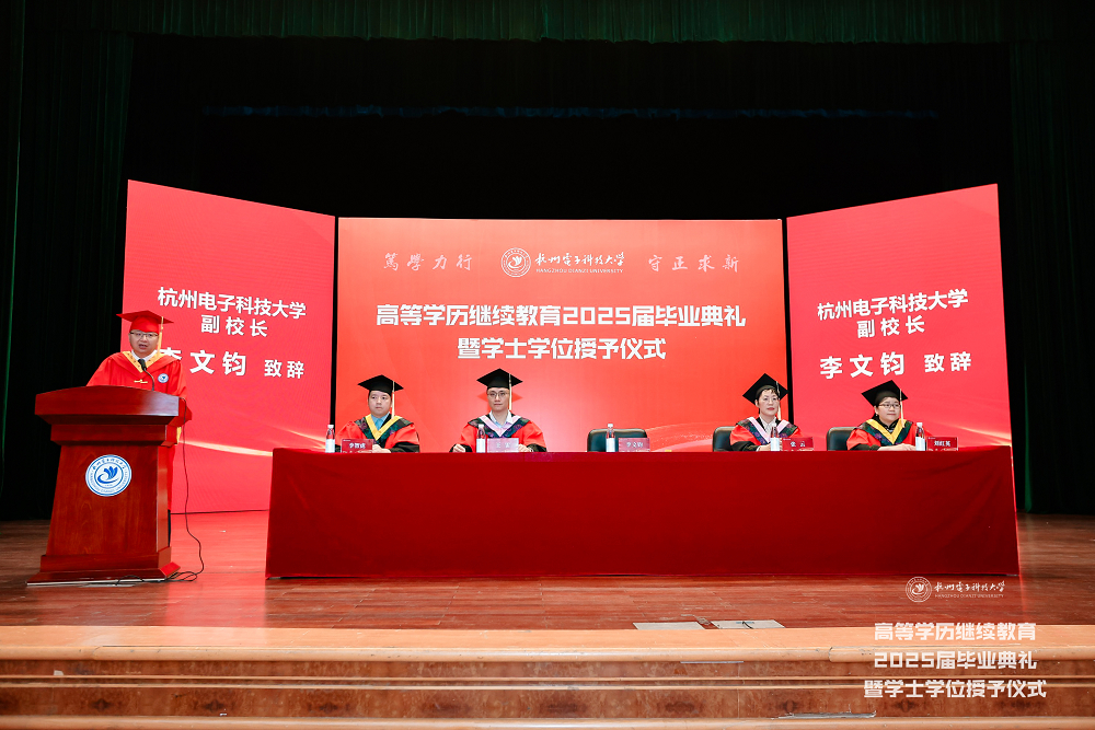 典礼上,继续教育学院党委书记张云宣读了杭州电子科技大学高等学历继续教育2025届毕业生文件,继续教育学院院长王雷宣读2025届优秀毕业生表彰文件,继续教育管理中心副处长刘红英宣读2025届优秀学位论文表彰文件,并分别为毕业生代表、优秀毕业生代表、优秀毕业论文获得者颁发了毕业证书、荣誉证书。