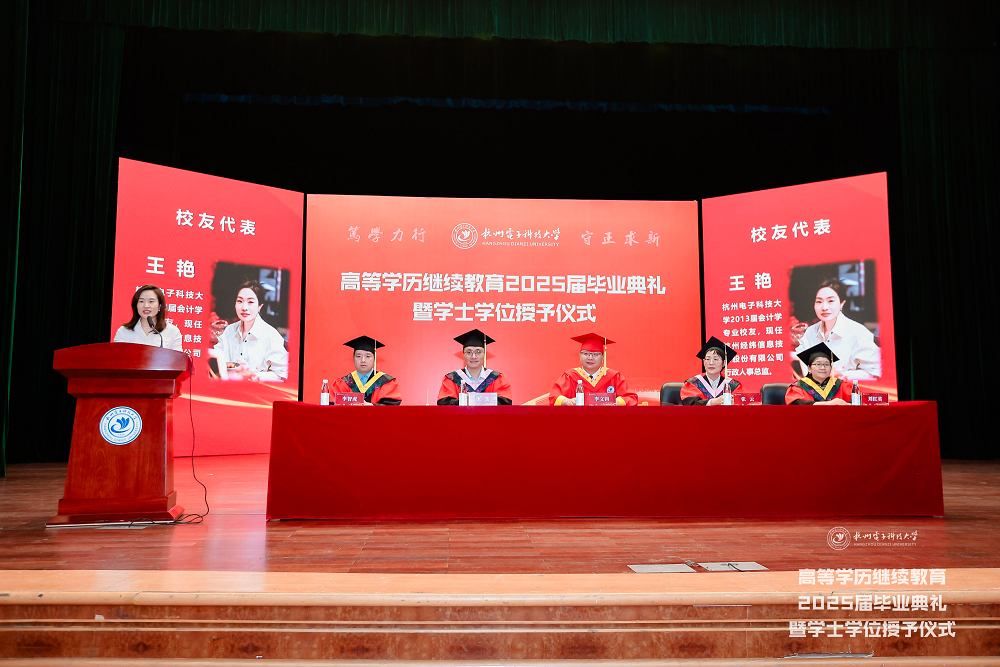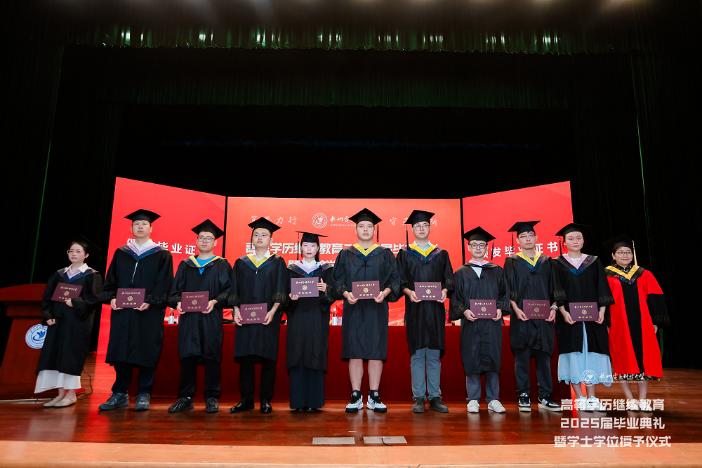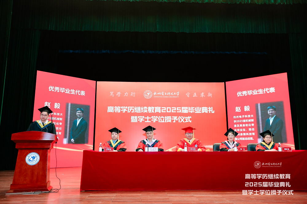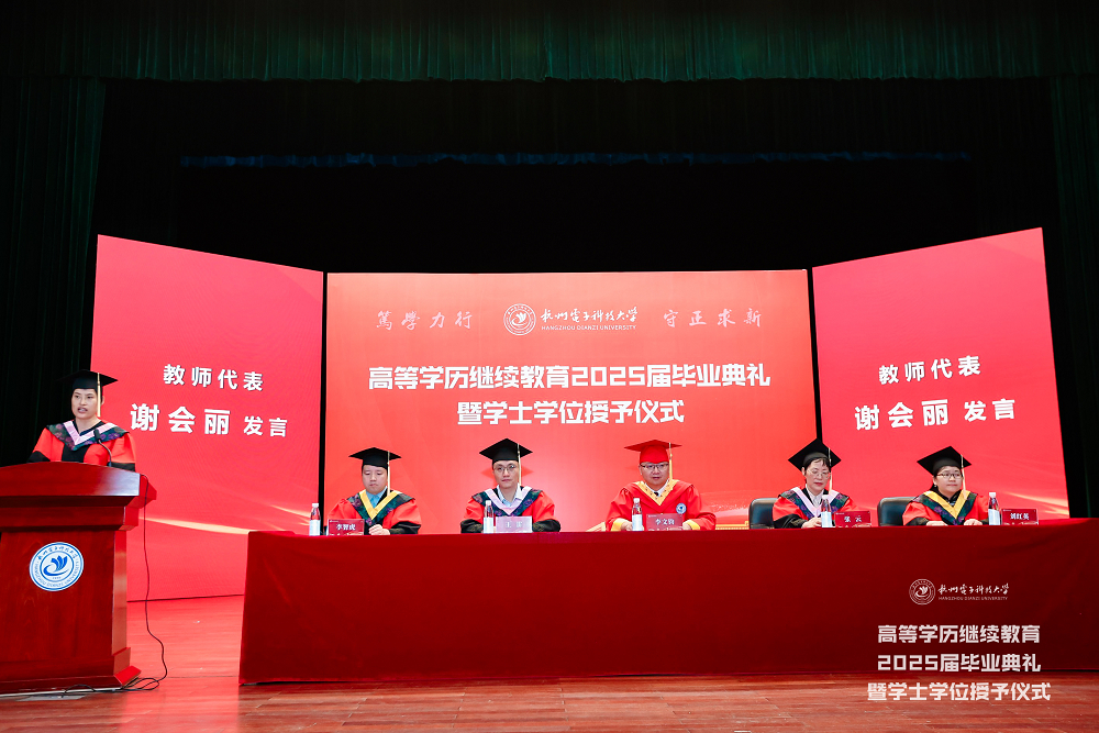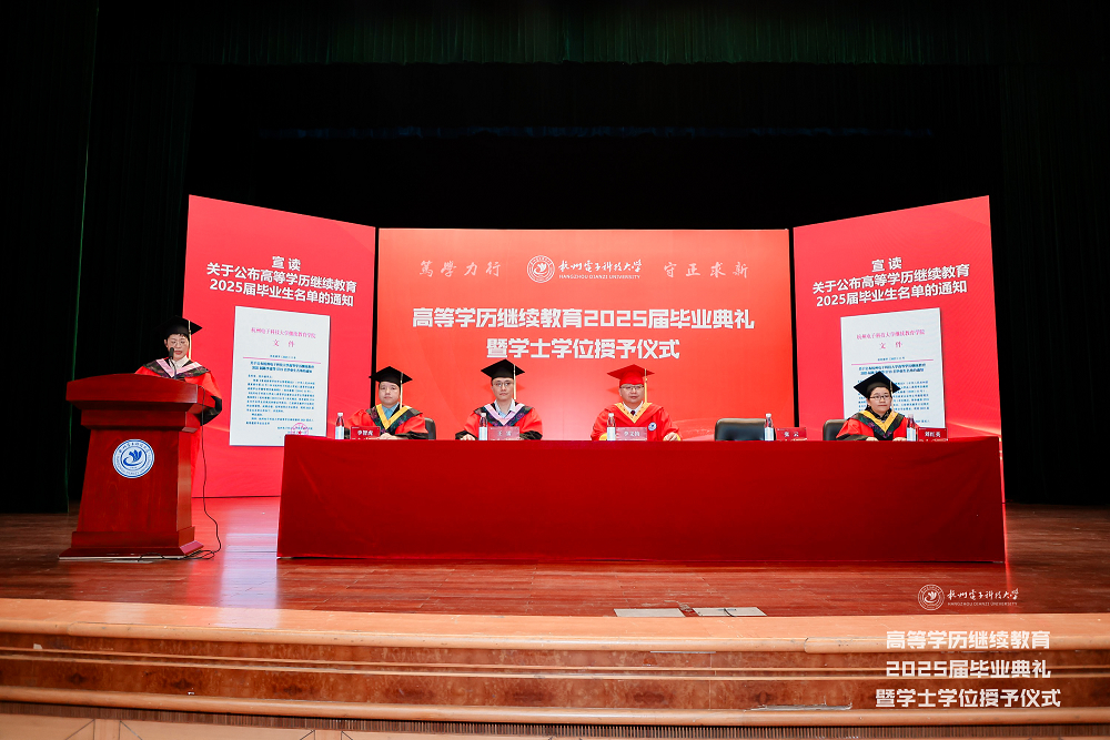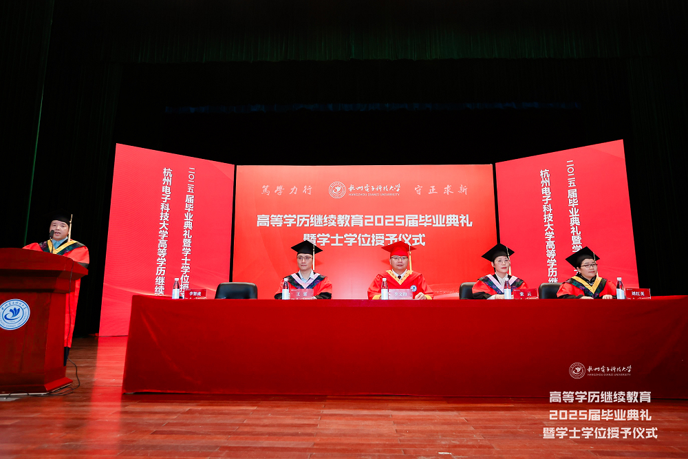 6月21日,杭州电子科技大学高等学历继续教育2025届毕业典礼暨学士学位授予仪式在下沙校区学生活动中心剧院隆重举行。5719名毕业生从这里切换人生赛道,奔赴万里鹏程。