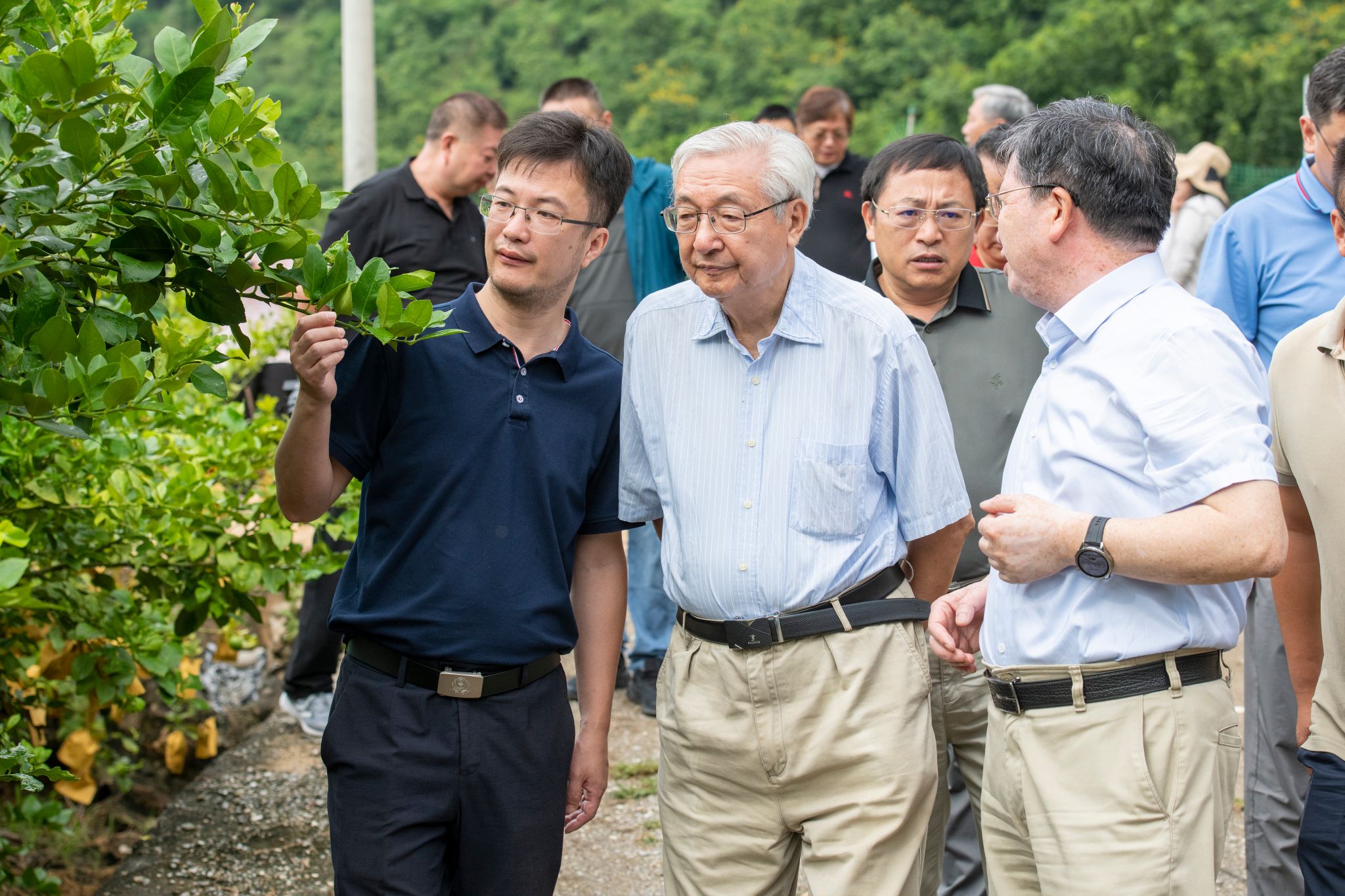 徐强教授向许智宏院士介绍绿原酸防治柠檬果园黄龙病的效果(记者 刘涛 摄)
