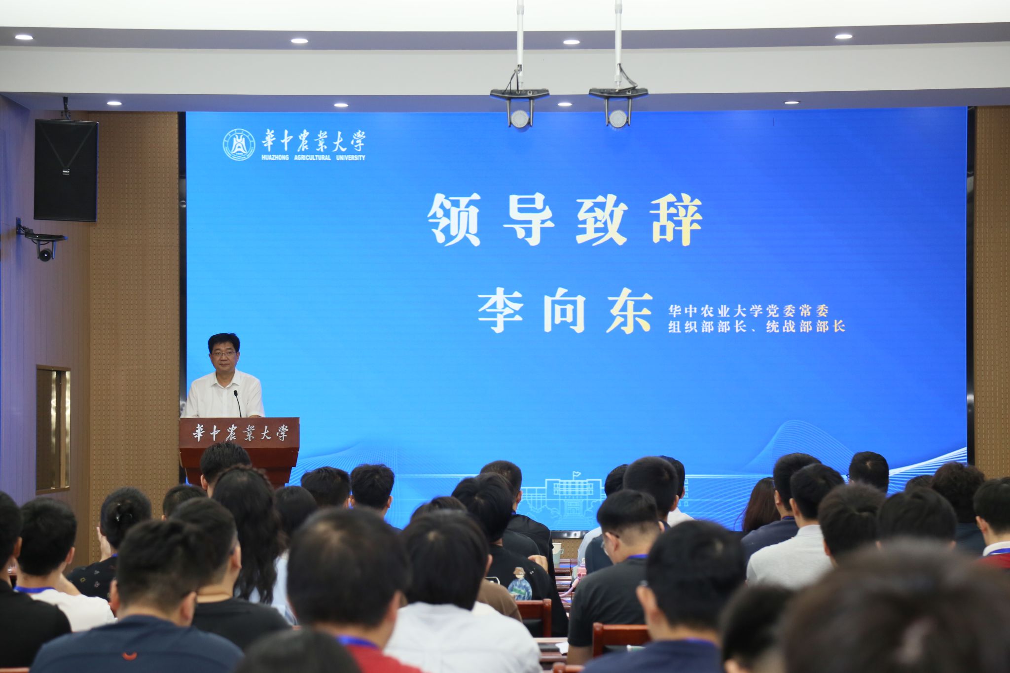 开班式在庄严的国歌声中拉开帷幕。李向东代表学校向全体学员表示热烈欢迎,他介绍了学校办学历史,详细阐释了学校“勤读力耕、立己达人”的校训精神,介绍了学校“顶天、立地、育人、惠民”的科技工作理念和服务乡村振兴战略的实践成果。他寄语青年科技人才,要以家国情怀锚定科研方向,以终身学习激发创新活力,以协同合作汇聚攻关合力,将个人理想深度融入国家发展大局。