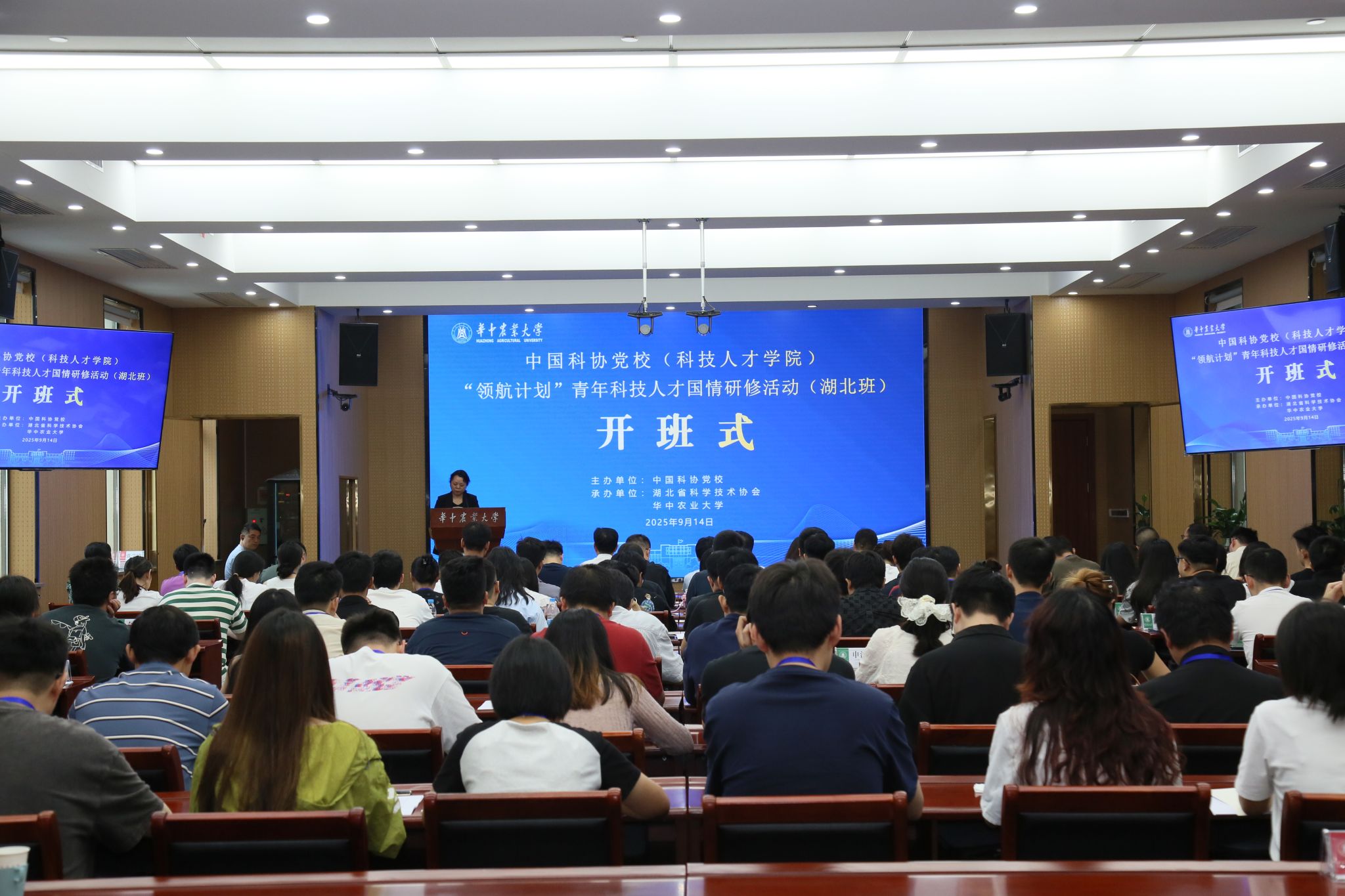9月14日上午,中国科协党校(科技人才学院)“领航计划”青年科技人才国情研修活动(湖北班)开班式在我校举行。湖北省科协党组成员、副主席朱志斌,我校党委常委、组织部部长、统战部部长李向东等出席开班式并讲话。全国各地的青年科技人才和中国科协青年人才托举工程(博士生专项)入选者研修班全体学员齐聚狮子山下,开启为期一周的国情研修之旅。