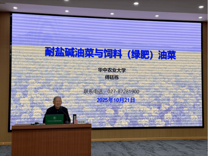 10月21日晚,中国工程院院士、华中农业大学教授傅廷栋在我校教育培训学院作“耐盐碱油菜与饲料(绿肥)油菜”专题讲座,来自新疆维吾尔自治区农技推广骨干人才培训班的150名学员参加学习。课程聚焦于耐盐碱油菜与饲料(绿肥)油菜技术的推广与应用,为破解新疆当地农业发展的关键难题提供了科技良方。