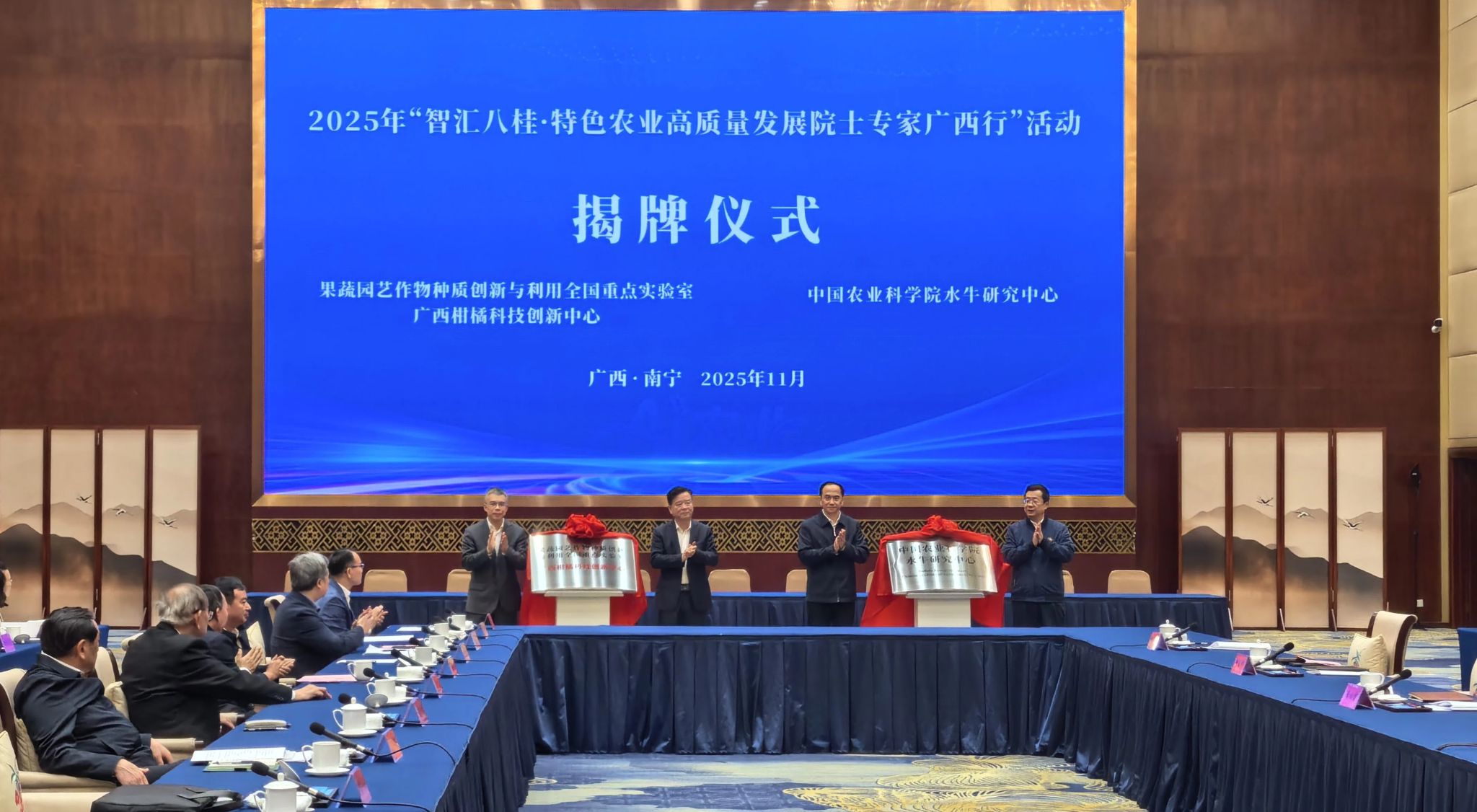▲为果蔬园艺作物种质创新与利用全国重点实验室广西柑橘科技创新中心揭牌