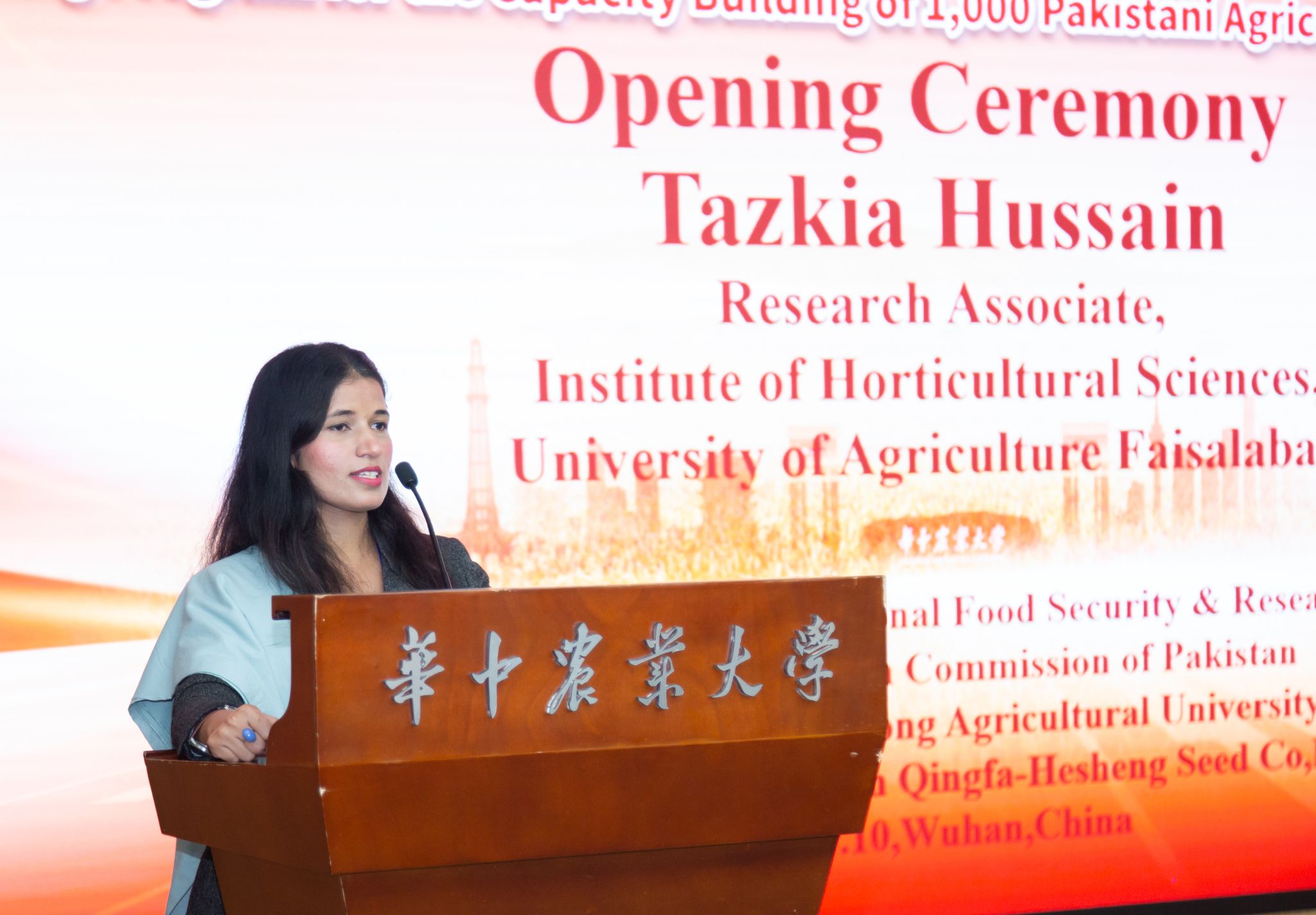 最后,巴基斯坦学员代表塔兹基亚·侯赛因发言。她提到,巴基斯坦政府此次培训旨在解决种子质量与采后处理难题。项目将助力参训者积累农业生产、粮食安全领域实操经验,提升可持续创新农业技术能力,更好地服务本国农业产业。期待培训后大家创新性开展工作,通过农业转型为国家经济发展添砖加瓦。