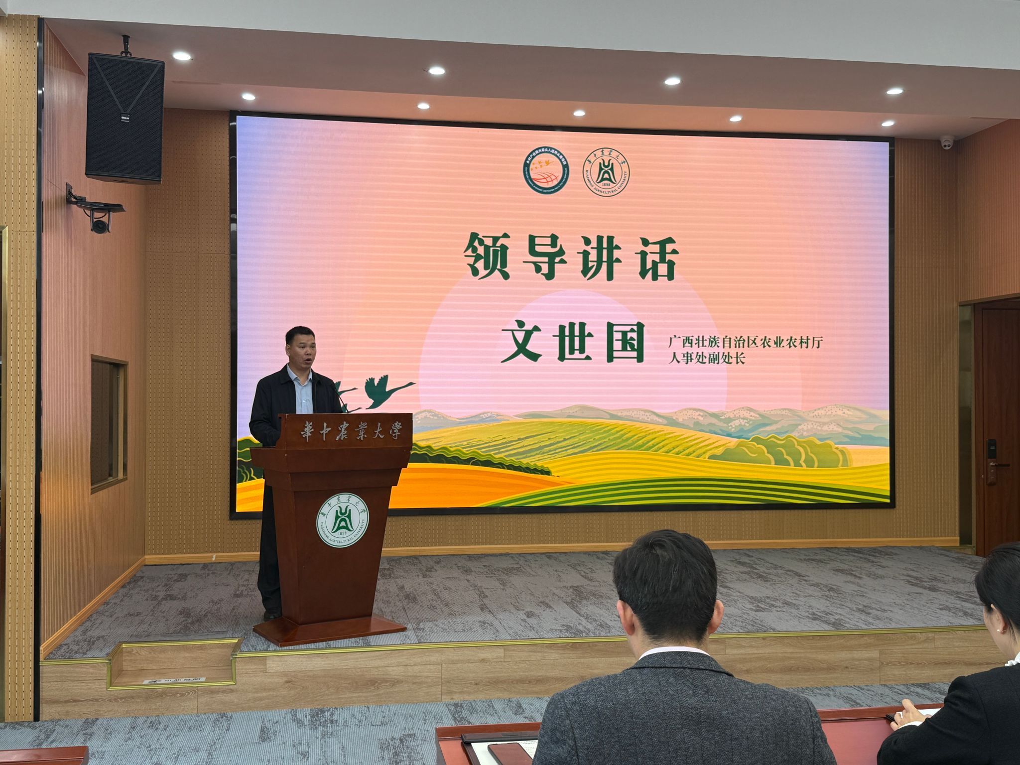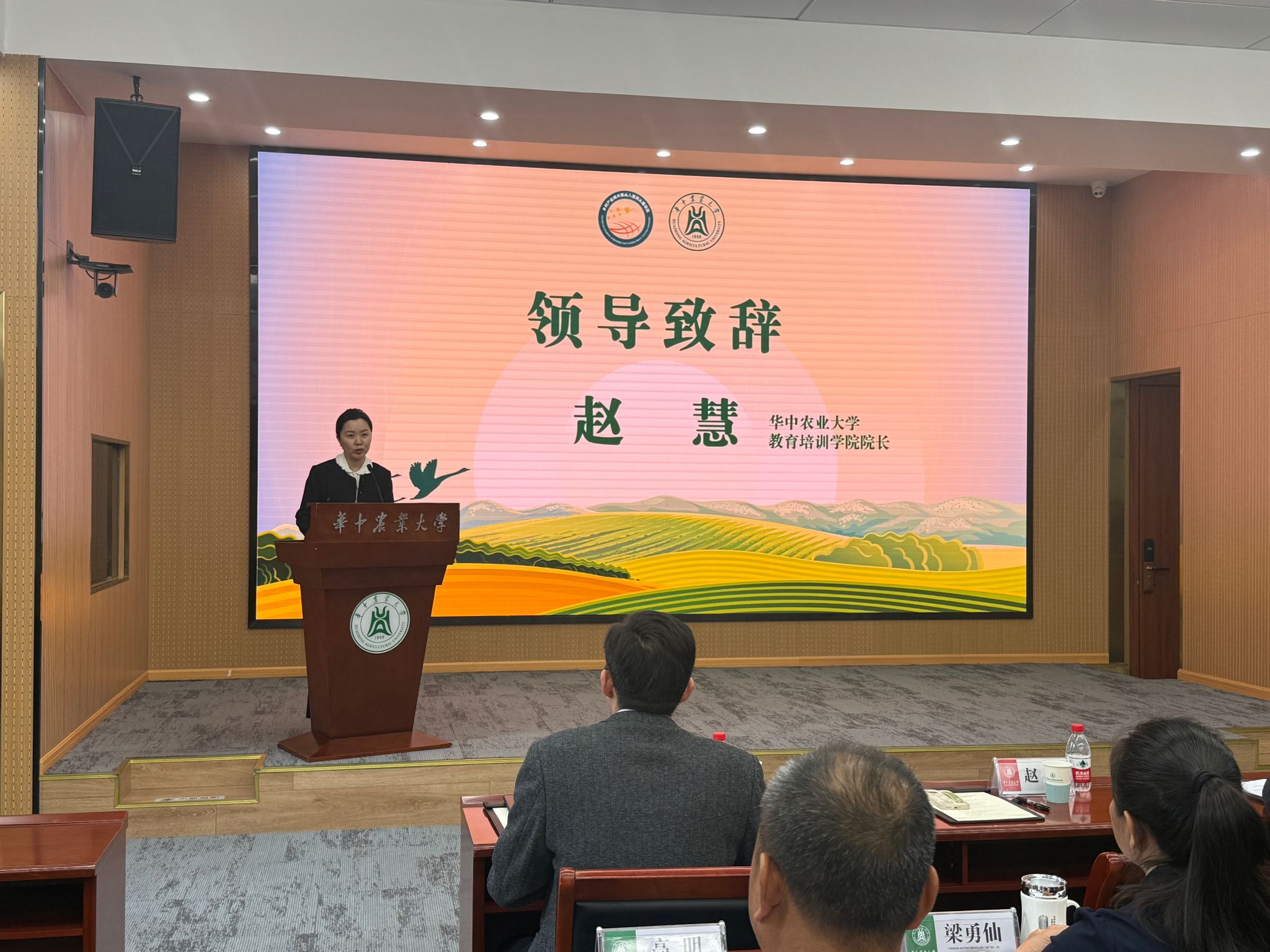 赵慧代表学校致辞,对广西学员的到来表示热烈欢迎,并对自治区农业农村厅长期以来的支持表示感谢。她指出,本期项目聚焦智慧农业,着力推动数字技术与农业全产业链深度融合,为广西农业现代化发展注入新动能。赵慧回顾了华中农业大学与广西在农业科技推广、人才培养等方面的深厚合作基础,并表示学校将整合优质资源,全力做好教学组织与服务保障,助力学员成长为懂技术、善经营、能带动的高素质“领头雁”。