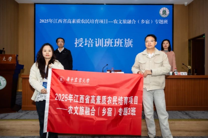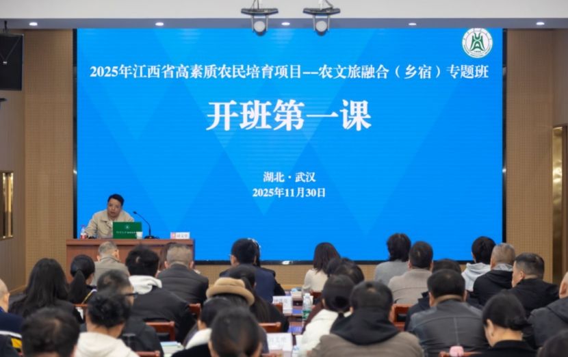 11月30日,2025年江西省高素质农民项目——农文旅融合(乡宿)专题三、四班在我校正式开班。江西省农业农村产业发展服务中心农村人居环境治理处四级调研员胡文华,教育培训学院院长赵慧出席开学典礼。仪式由教育培训学院培训服务办公室主任葛全胜主持。