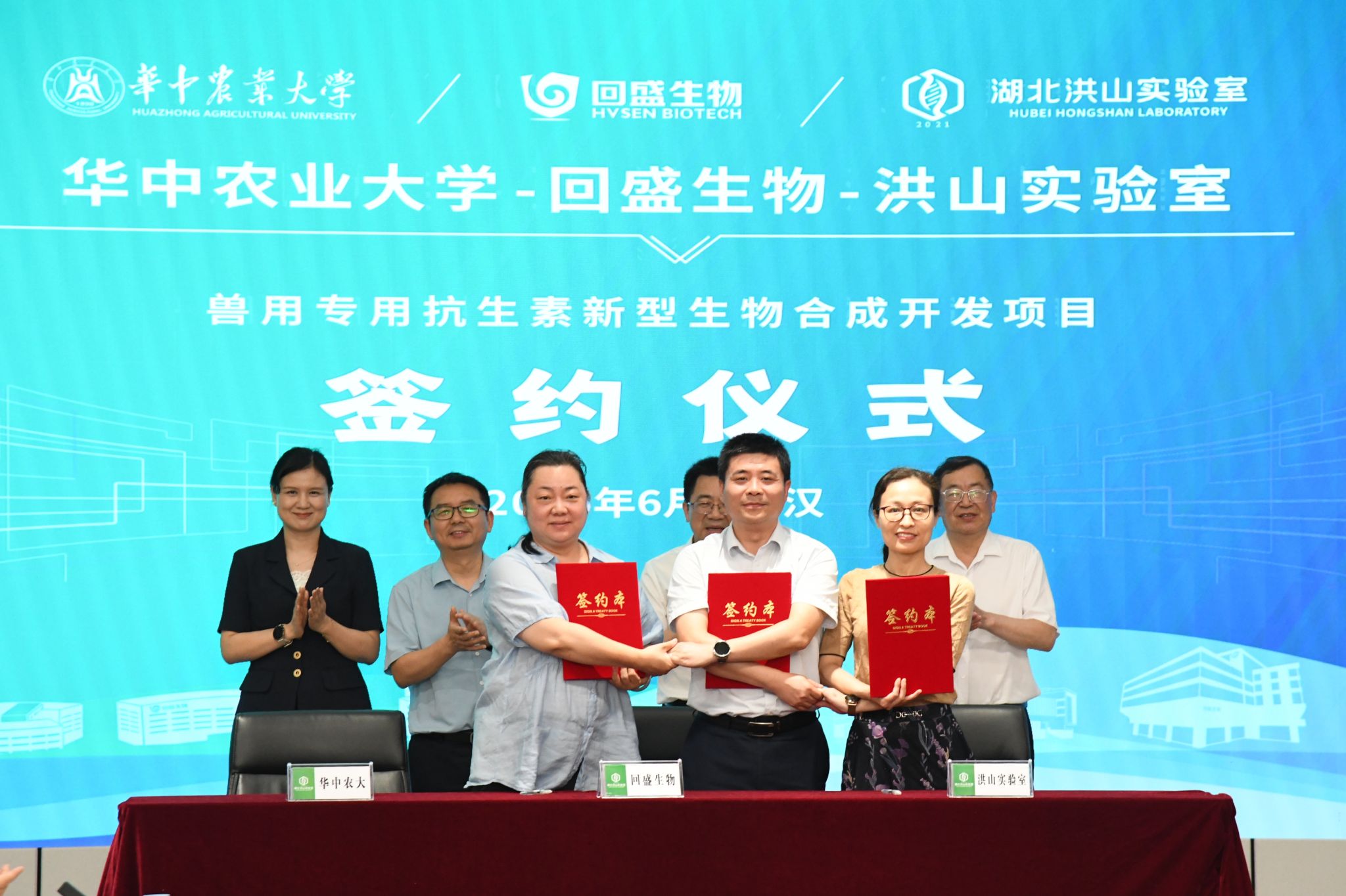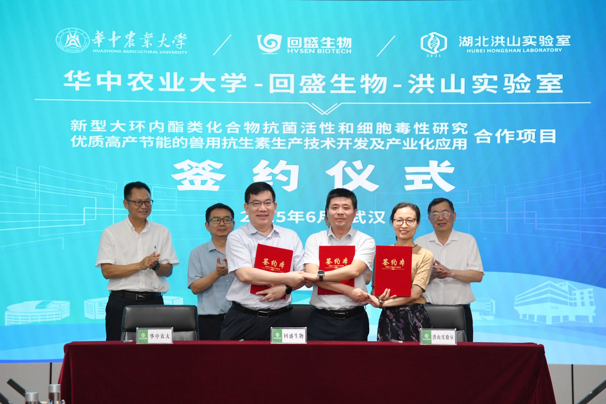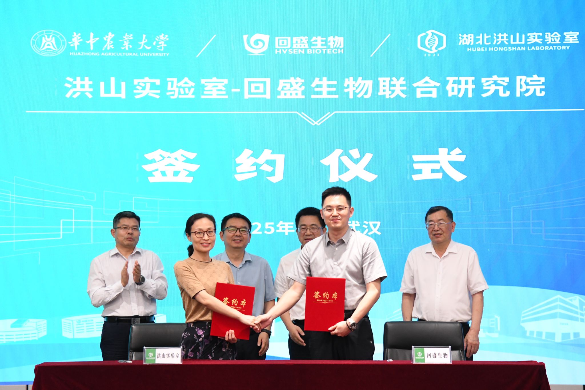 华中农业大学、武汉回盛生物科技股份有限公司、湖北洪山实验室在湖北洪山实验室A111会议室联合签署项目合作协议,并成立“洪山实验室-回盛生物联合研究院”,协同推动科技创新与产业创新深度融合。