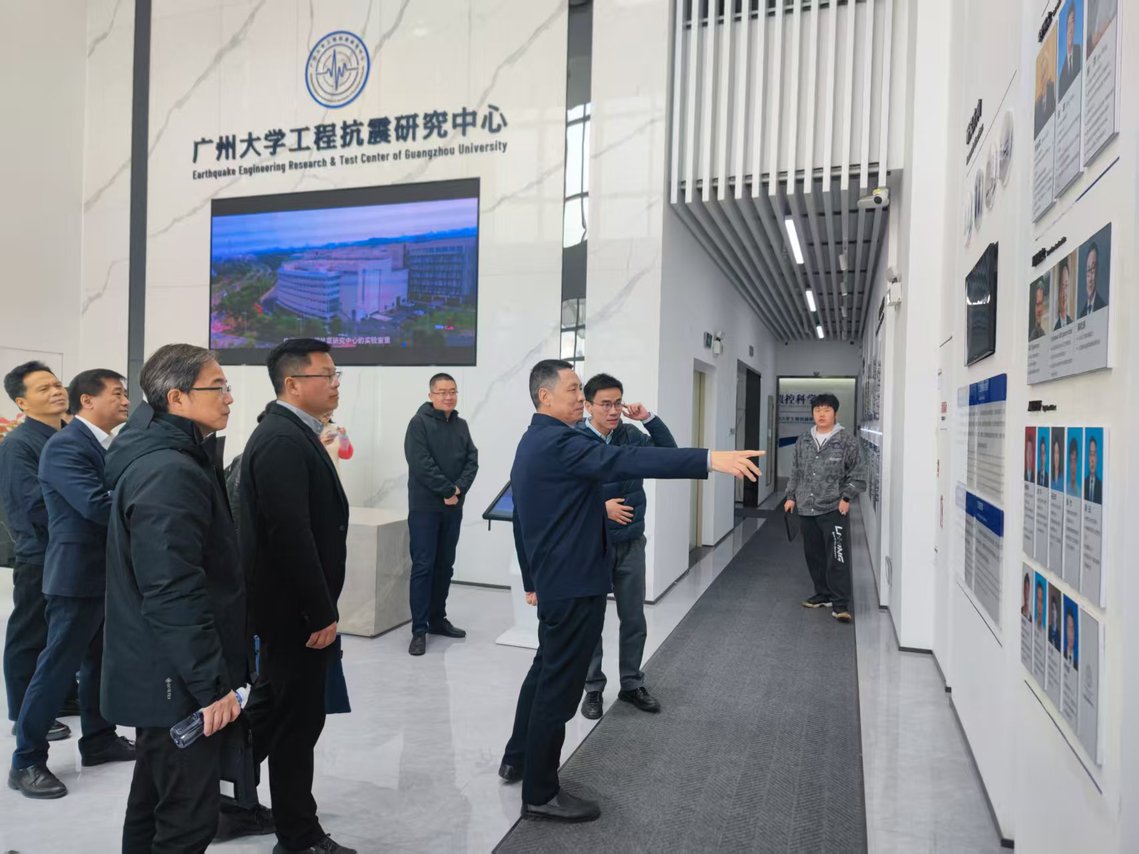 调研组实地参观了广州大学师生学习共享空间、智慧课室和工程抗震研究中心。在智慧课室,该校实验中心、网络与现代教育技术中心负责人以“数字化转型下的广州大学智慧校园建设实践与思考”为题,详细介绍该校通过“平台+数据+服务”三位一体架构、AI赋能教学科研场景、数字孪生校园管理平台等实现数字化转型的创新举措,并展示了智慧课室、虚拟仿真教学等场景应用案例。在广州大学工程抗震研究中心、振(震)控科学馆科普展厅,调研组现场观摩抗震结构实验平台,了解中国隔减震及振动控制领域发展情况及工作原理。