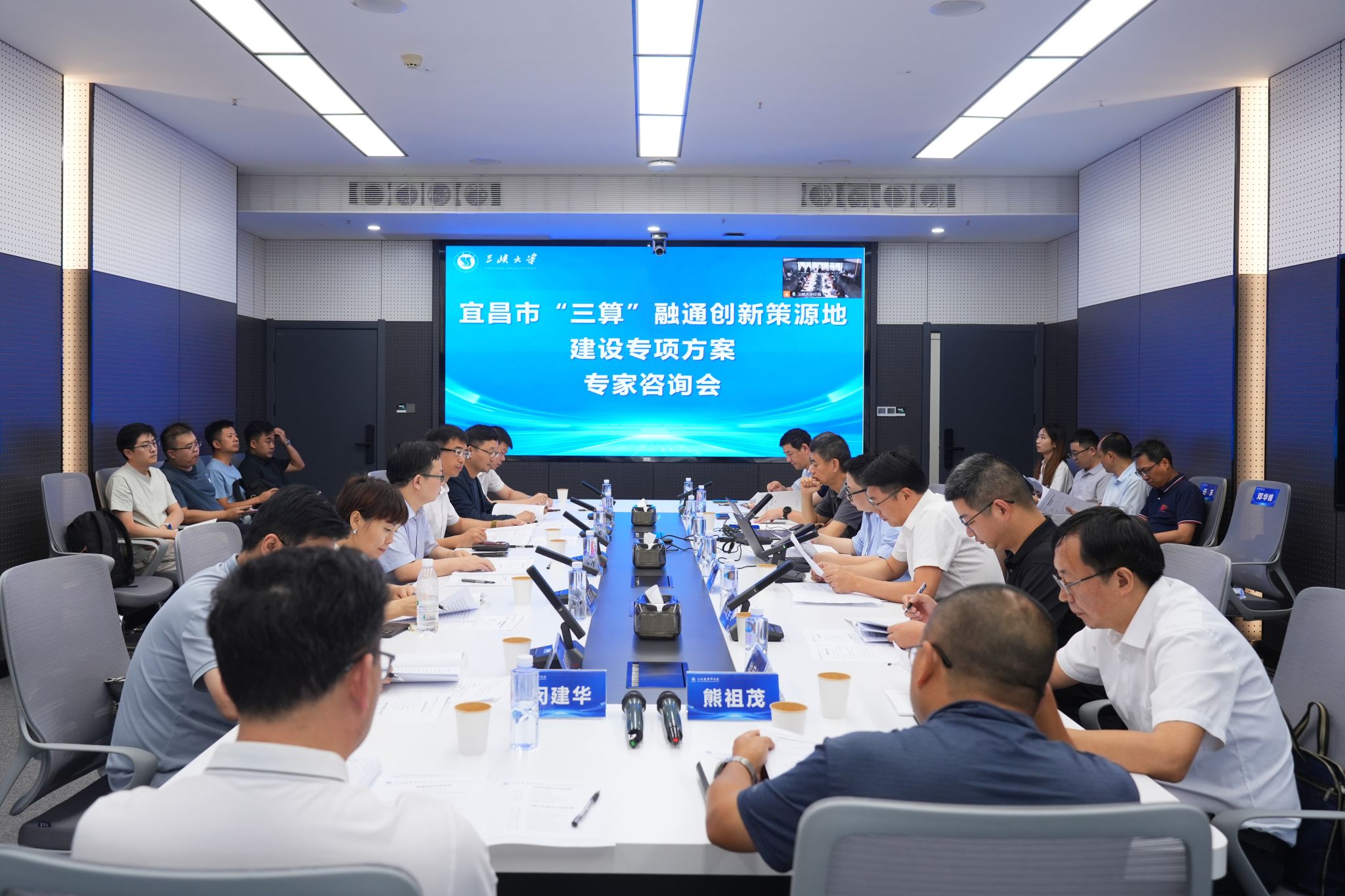 8月2日,三峡大学组织召开《宜昌“三算”融通创新策源地建设专项方案》(以下简称《方案》)专家咨询会,会议邀请了工业智造、水利、航运、化工、云计算、大数据等领域多位资深专家对《方案》进行指导,专家成员包括华中科技大学教授李培根、水利部三峡工程管理司司长阮利民、水利部信息中心副主任成建国,以及中国电信、中国移动、高德软件、百度公司、兴发集团等专家。出席会议的还有长江三峡通航管理局、宜昌市发展和改革委员会、市水利和湖泊局、市数据局、市经信局、市生态环境局、市交通运输局等单位的专家和代表。三峡大学校长黄艳、副校长张锐出席会议。