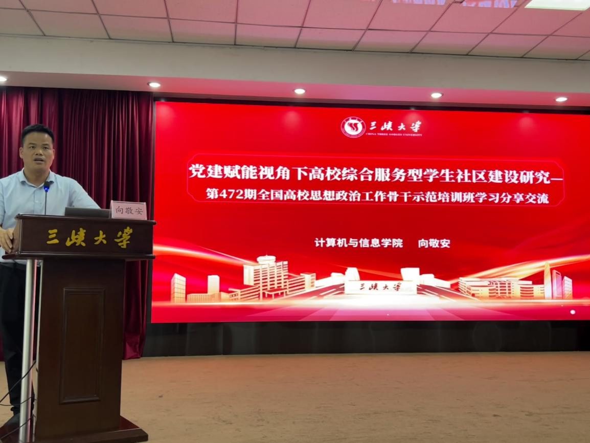 实践探索畅分享,三全育人构新局。在专题交流环节,计算机与信息学院党委副书记向敬安以《党建赋能视角下高校综合服务型学生社区建设研究》为题,系统阐述了党建引领下的学生社区育人新模式;法学与公共管理学院党委副书记赵伟忠以《新时代高校学生社区“三全育人”模式创新实践》为题,讲述了“一站式”学生社区建设的典型案例和创新做法;学生处副处长王显锋作题为《铸牢中华民族共同体意识的校园落地策略》的分享,勉励全体辅导员多措并举精准做好各民族学生教育管理服务工作,持续铸牢中华民族共同体意识。