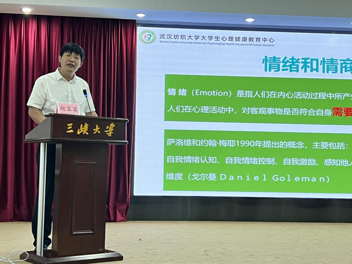 心理赋能促成长,履职尽责迈新阶。9月4日,武汉纺织大学心理健康教育中心主任赵宝富以《高校教师的压力管理与情绪调适》为题进行教师心理健康专题讲座。他从情绪识别、认知重构等维度解析压力应对策略,现场教授“鸣天鼓”等减压技巧,并分享“100项幸福任务”实践清单,为教师提供系统化的心理调适方案。