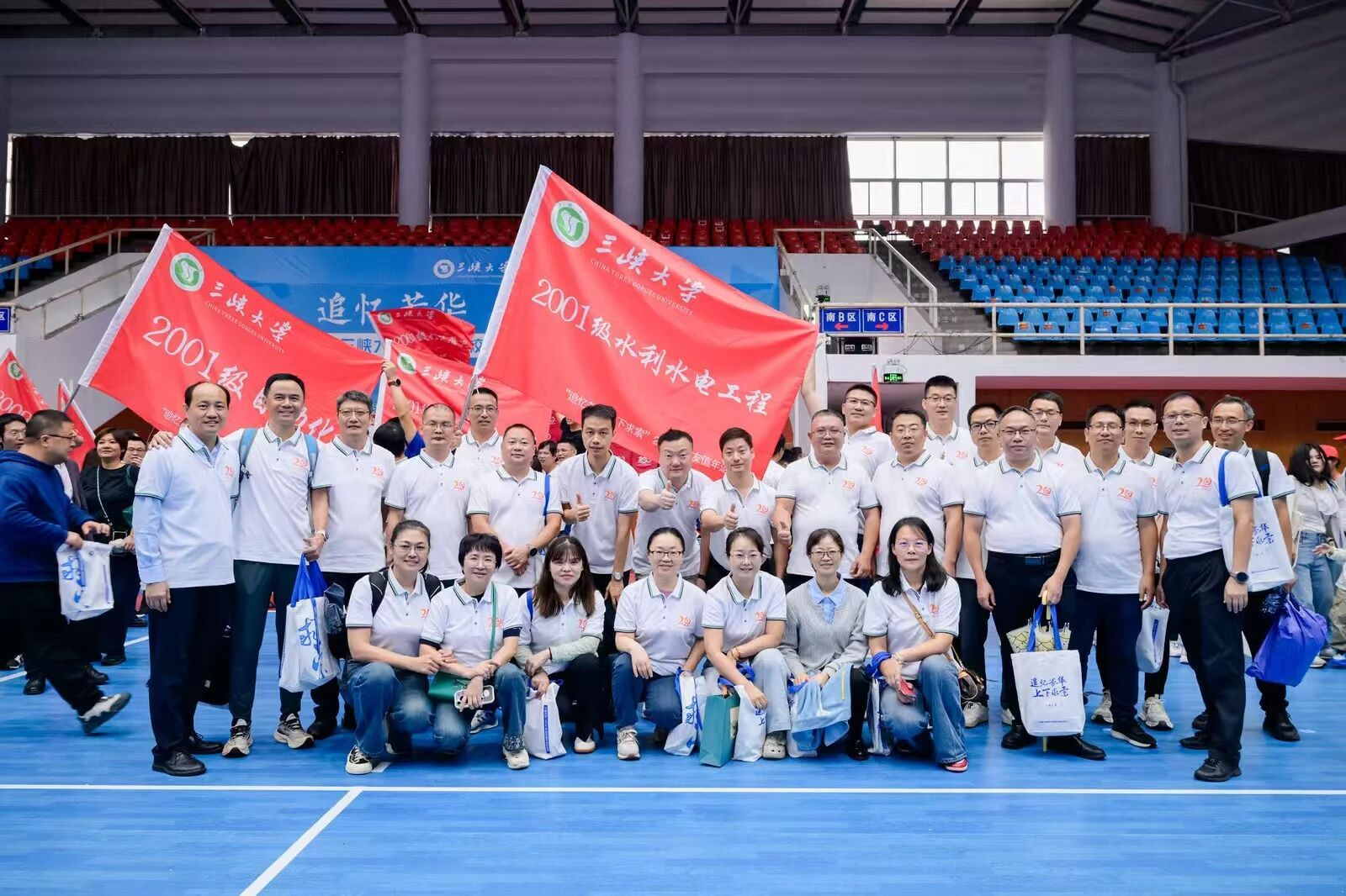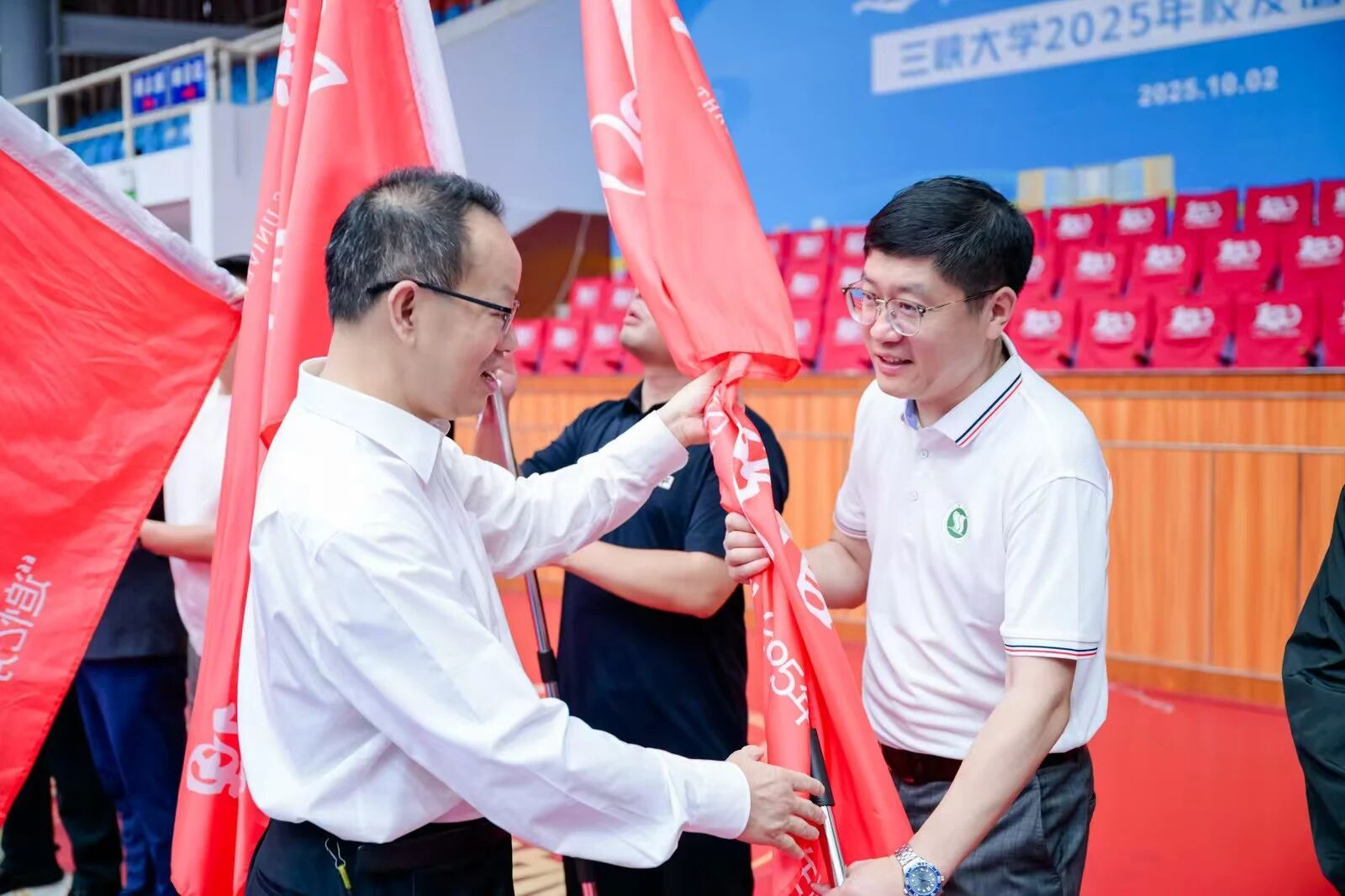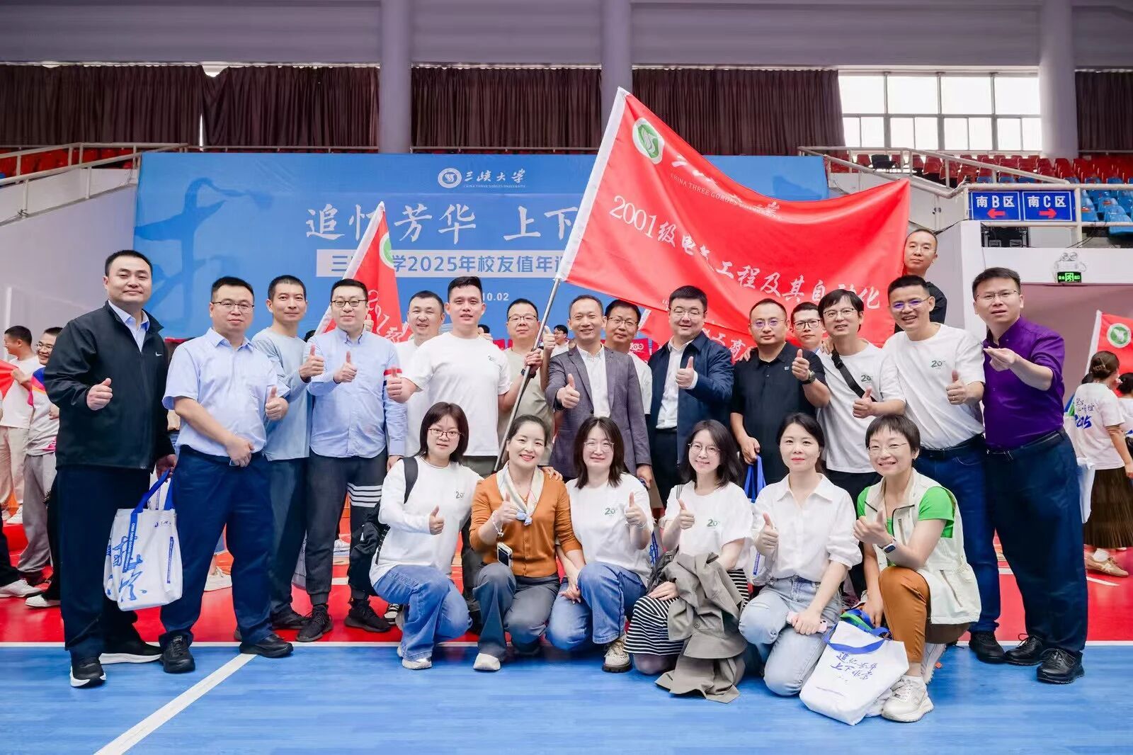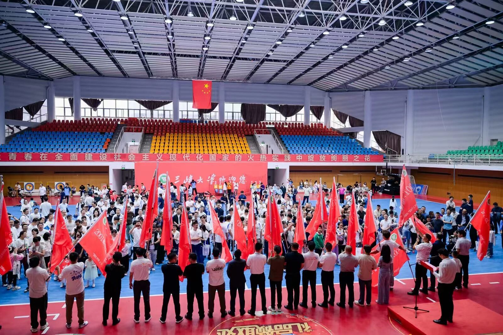 仪式上举行了返校班级授旗仪式,何伟军向各专业/班级代表授予承载着“求索”精神的旗帜。旗帜飘扬,不仅传递着母校对校友的深切期许,更象征着“三峡大学人”的精神血脉代代相承。
