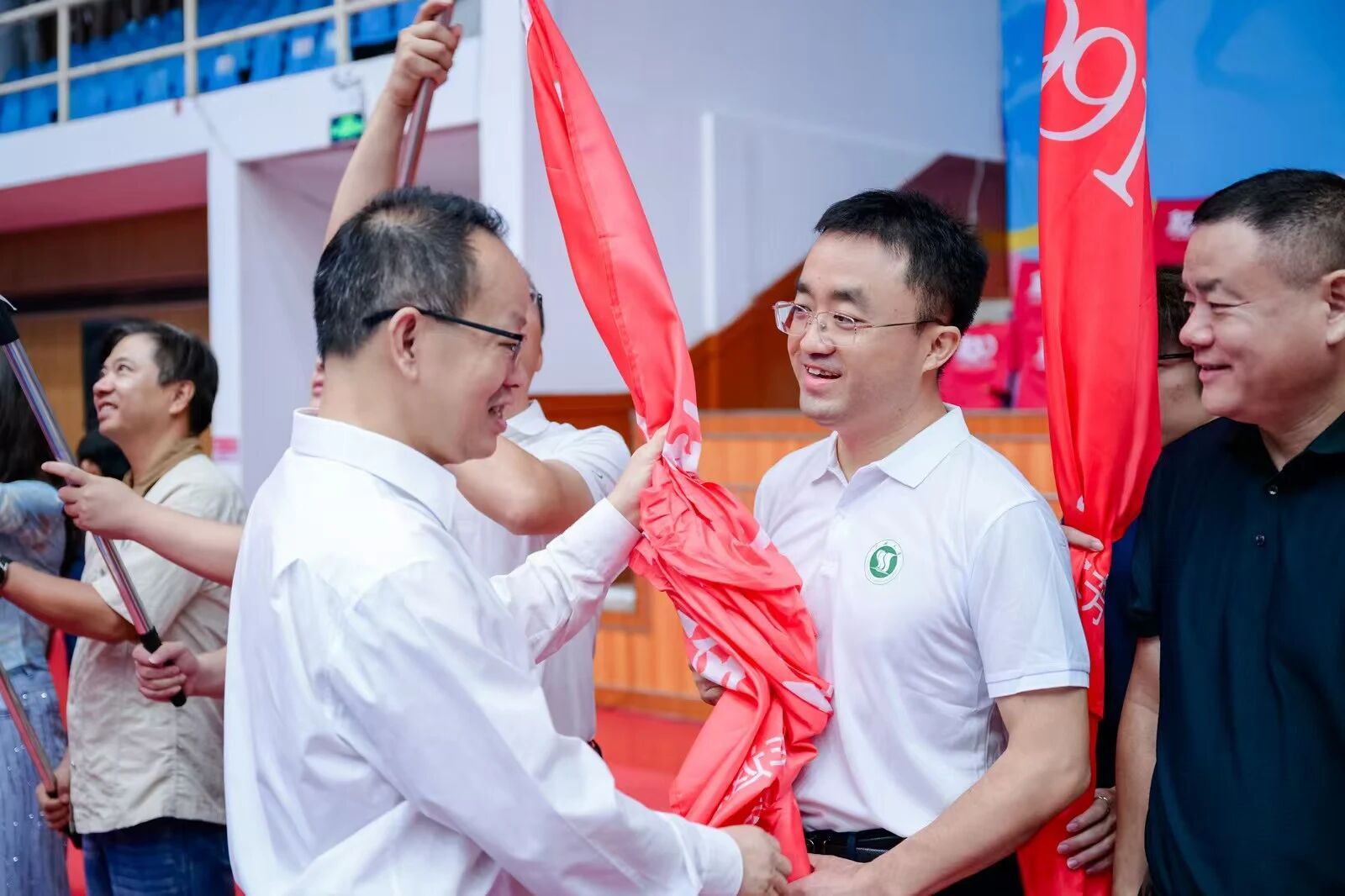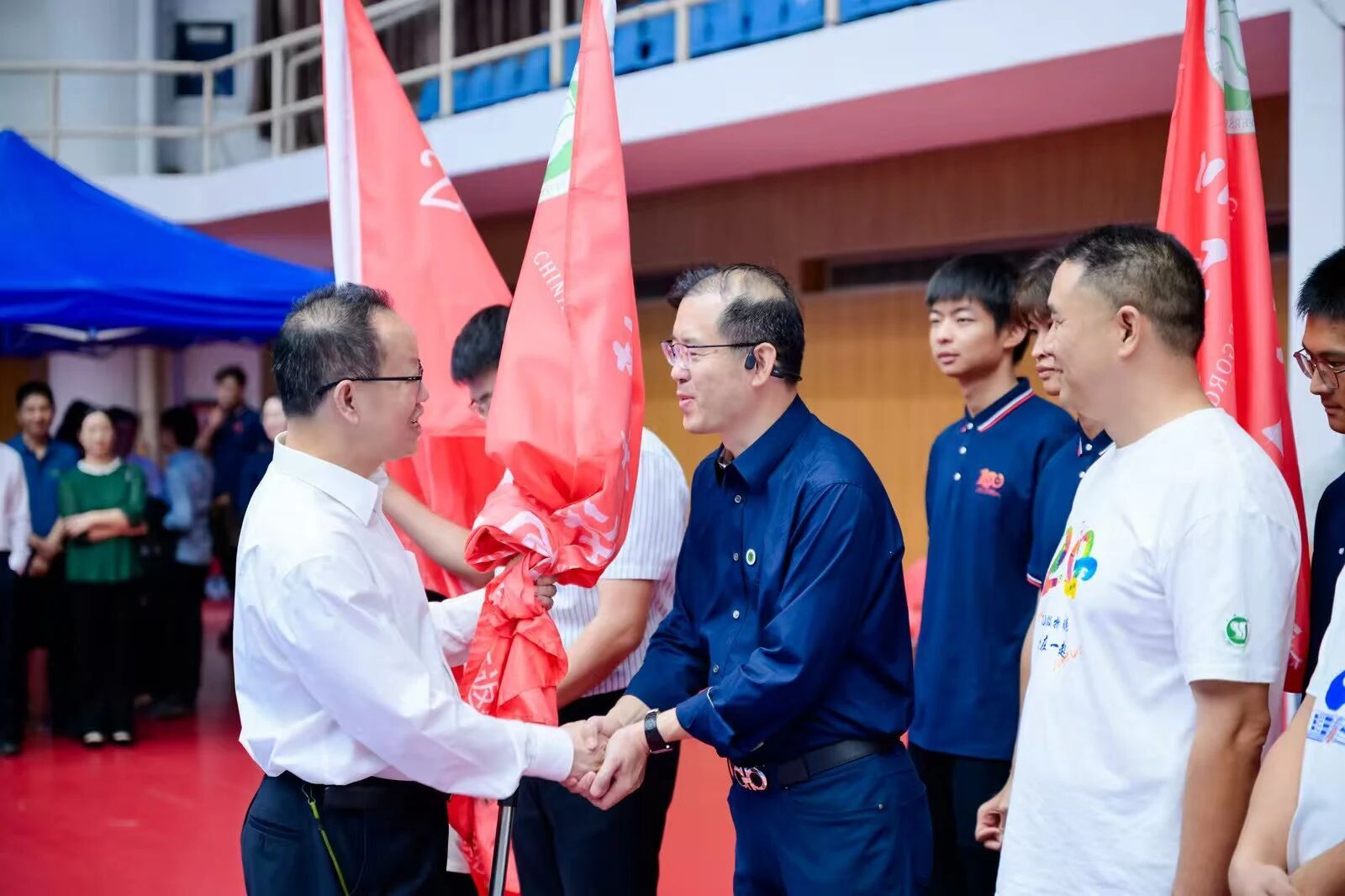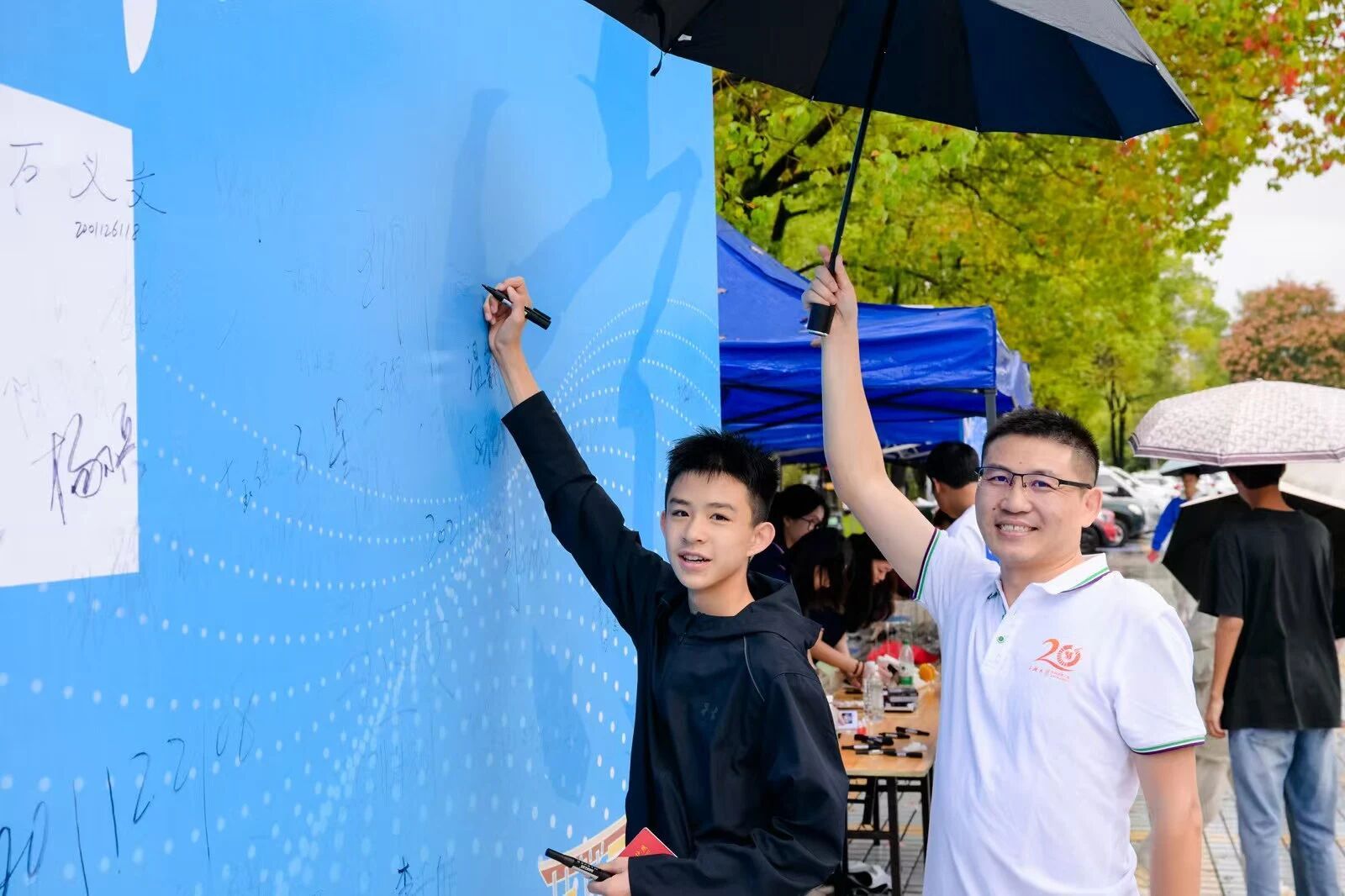 秋雨淅沥,难掩校友重逢热情。上午8时30分起,校友们陆续前往体育馆报到,现场洋溢着相聚的喜悦。