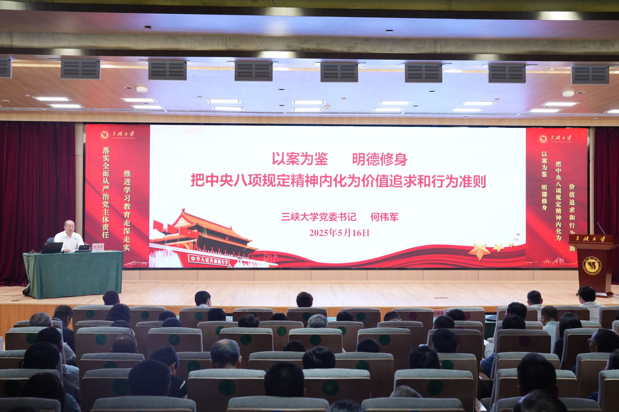 5月16日下午,学校党委召开2025年全面从严治党工作大会暨警示教育会。全体校领导,学校全体党委委员、纪委委员、副处级以上中层干部,各分党委(党总支)纪检委员、各民主党派代表、学校机关全体科级干部、后勤保障服务部科级干部、仁和医院机关科级干部、离退休党员代表参加了本次会议。会议由党委副书记李红主持。