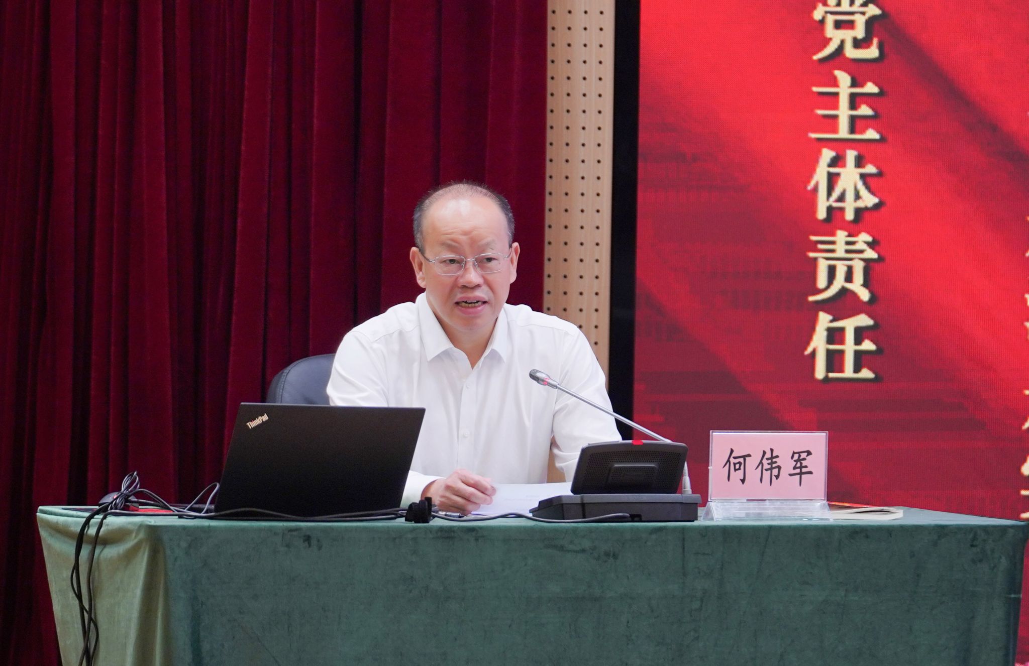 党委书记何伟军以《以案为鉴 明德修身 把中央八项规定精神内化为价值追求和行为准则》为题,为全体参会人员带来了一堂深刻而生动的警示教育专题党课。他深入浅出地介绍了中央八项规定出台的时代背景及其对国家政治生态、社会风气以及中国发展进程所产生的重要改变,并深刻剖析了湖北高校部分违反中央八项规定精神案例,用身边人身边事开展警示教育。他强调,学校党员干部要从相关案例中深刻汲取教训,时刻自省自警自律,树牢纪法意识和规矩意识,明确底线、红线、高压线,切实警惕“一念之差”造成“一生之毁”。最后,对学校开展“高校领域突出问题系统整治工作”进行了全面的动员部署。