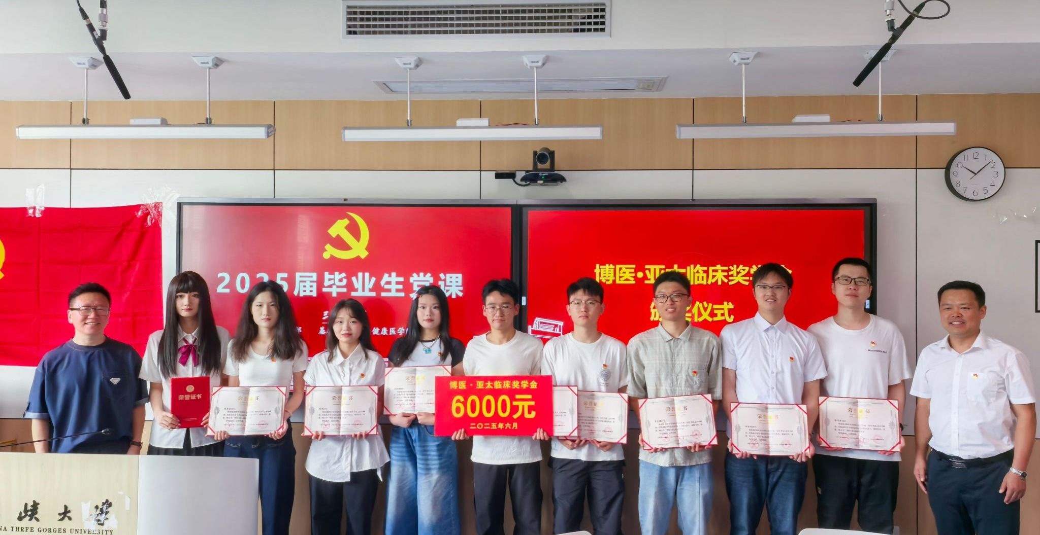 三峡大学“博医·亚太临床奖学金”由94届医疗专业校友、亚太医院管理有限公司董事长牟方国发起设立,系“博医奖学金”重要子项目,专项奖励三峡大学临床医学专业优秀本、硕应届毕业生及基础医学专业硕士毕业生,此次颁奖为该奖学金设立以来的第二次颁发,旨在激励优秀医学人才,促进学校医学教育事业发展。