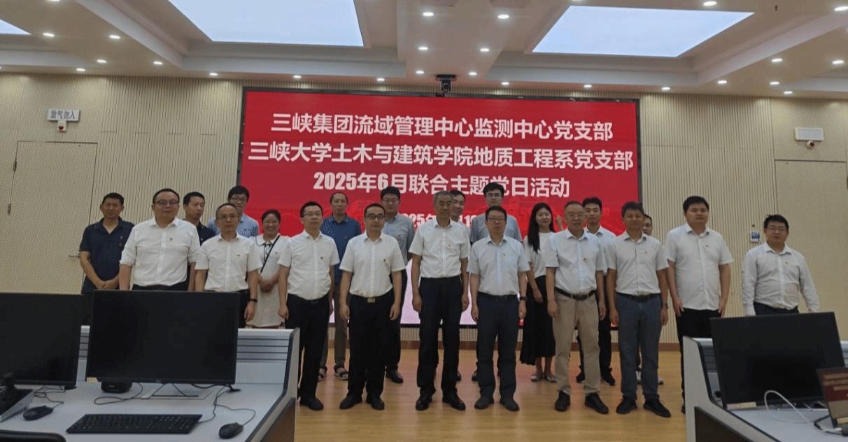 监测中心党支部书记童广勤介绍了党支部党建和业务工作情况,监测中心党支部相关负责人汇报了三峡工程安全监测工作,并演示了三峡枢纽安全监测在线监控系统。土木与建筑学院执行院长邓华锋详细介绍了土木与建筑学院的基本情况,学院地质工程系党支部书记刘艺梁介绍了党支部党建工作情况、学校在高陡边坡稳定性分析与控制和地质灾害防治方面开展的特色工作。随后,双方就基层党组织建设、三峡工程安全监测、地质灾害监测预警与数字孪生、研究生实践基地建设、地质科普等方面进行了深入交流。