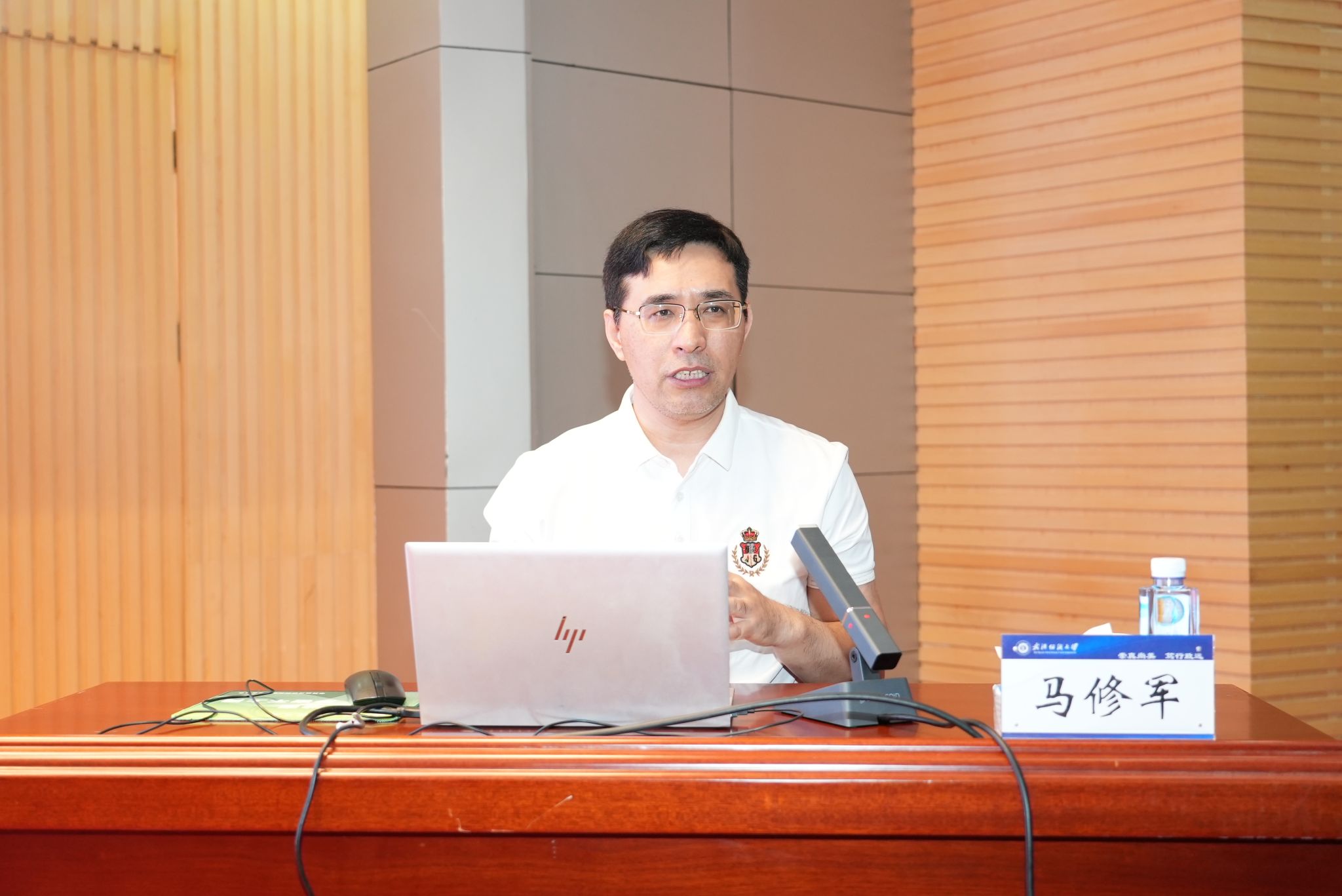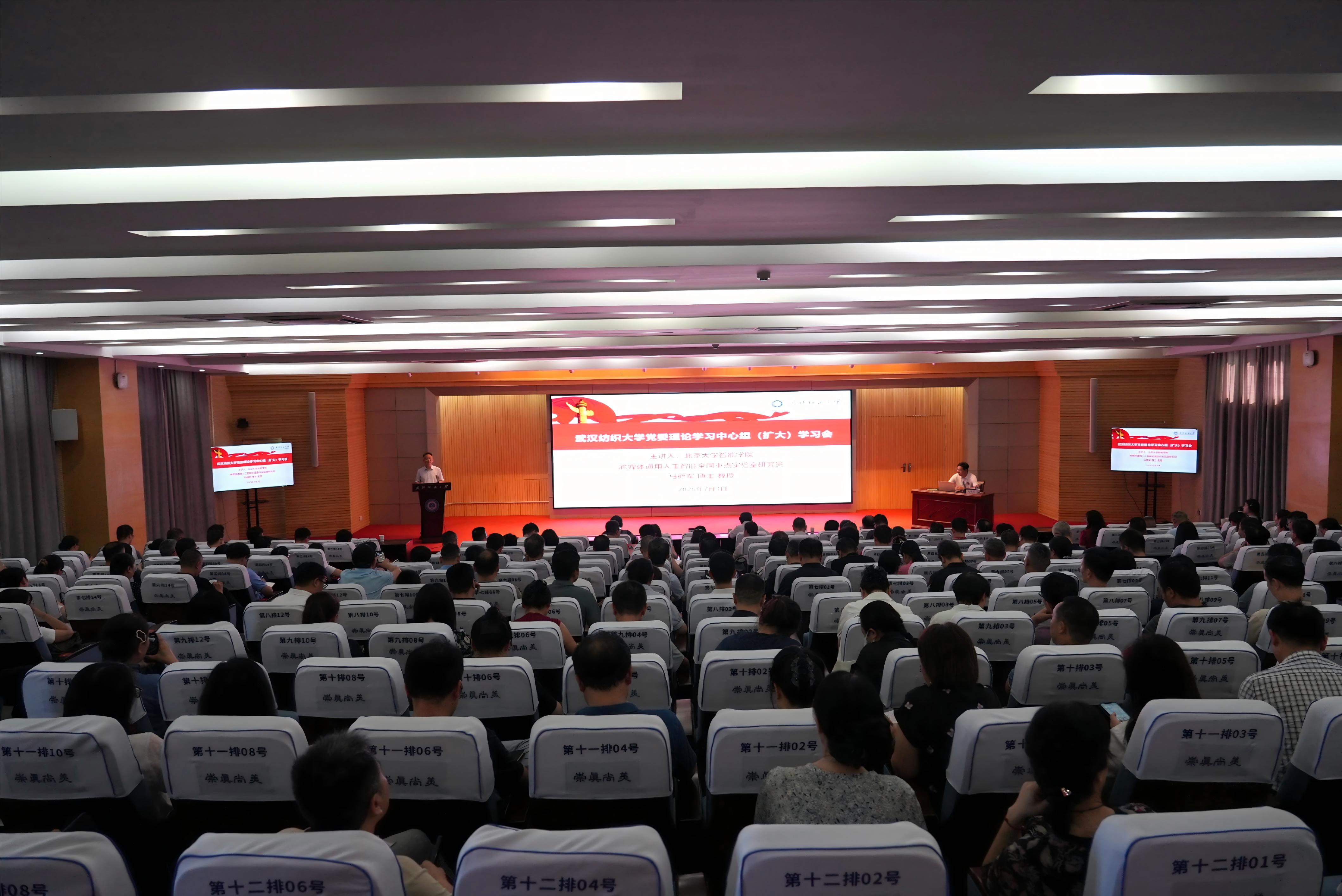 7月3日上午,武汉纺织大学党委理论学习中心组(扩大)学习会在阳光校区国际学术报告厅举行。北京大学智能学院跨媒体通用人工智能全国重点实验室研究员马修军教授作《湖北人工智能学院<人工智能微专业课程与培养方案>暨人工智能赋能专业行动101计划》专题辅导报告。全体校领导,两委委员,全体中层干部,教师代表参加会议。校党委副书记、副校长罗锦银主持会议。