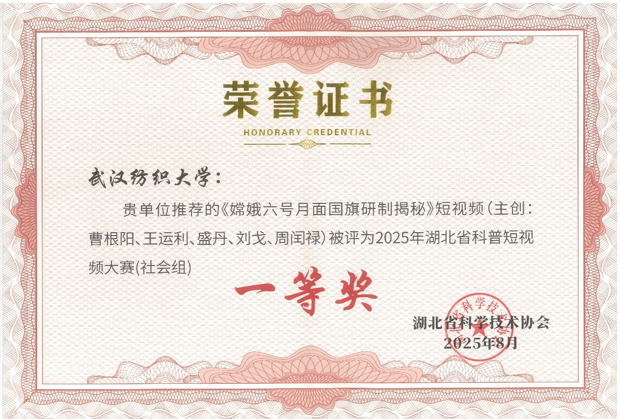 同时,由校科协推荐的视频《嫦娥六号月面国旗研制揭秘》,凭借对复杂技术深入浅出的科普呈现,荣获湖北省科普视频一等奖,让更多人了解到国旗背后的科技故事。